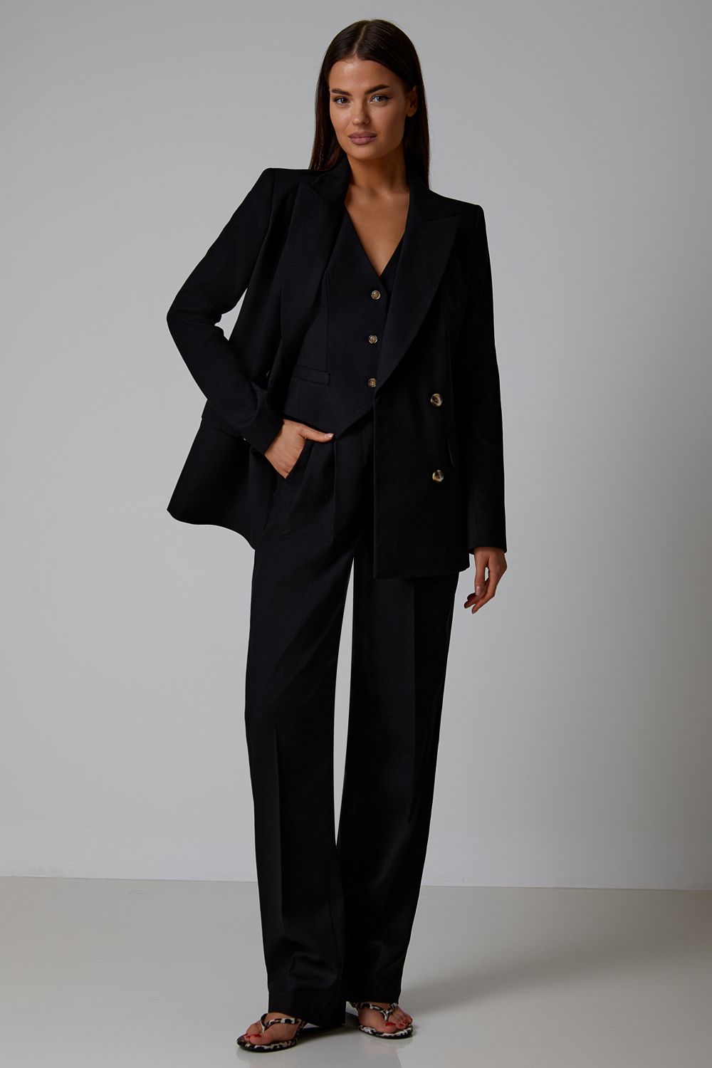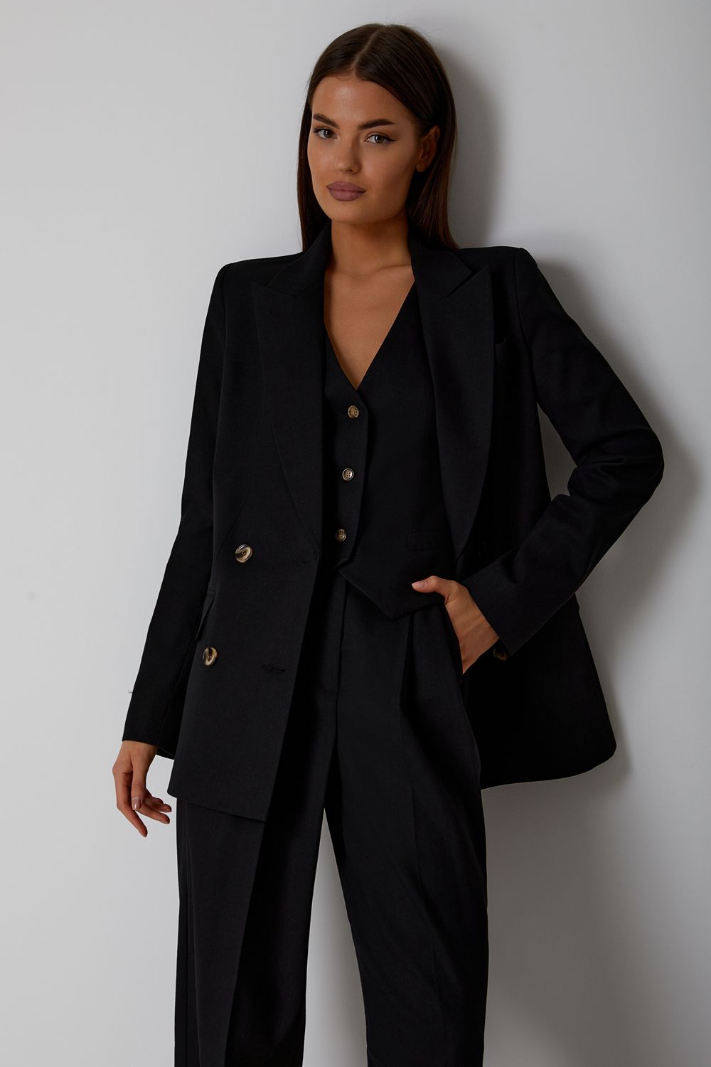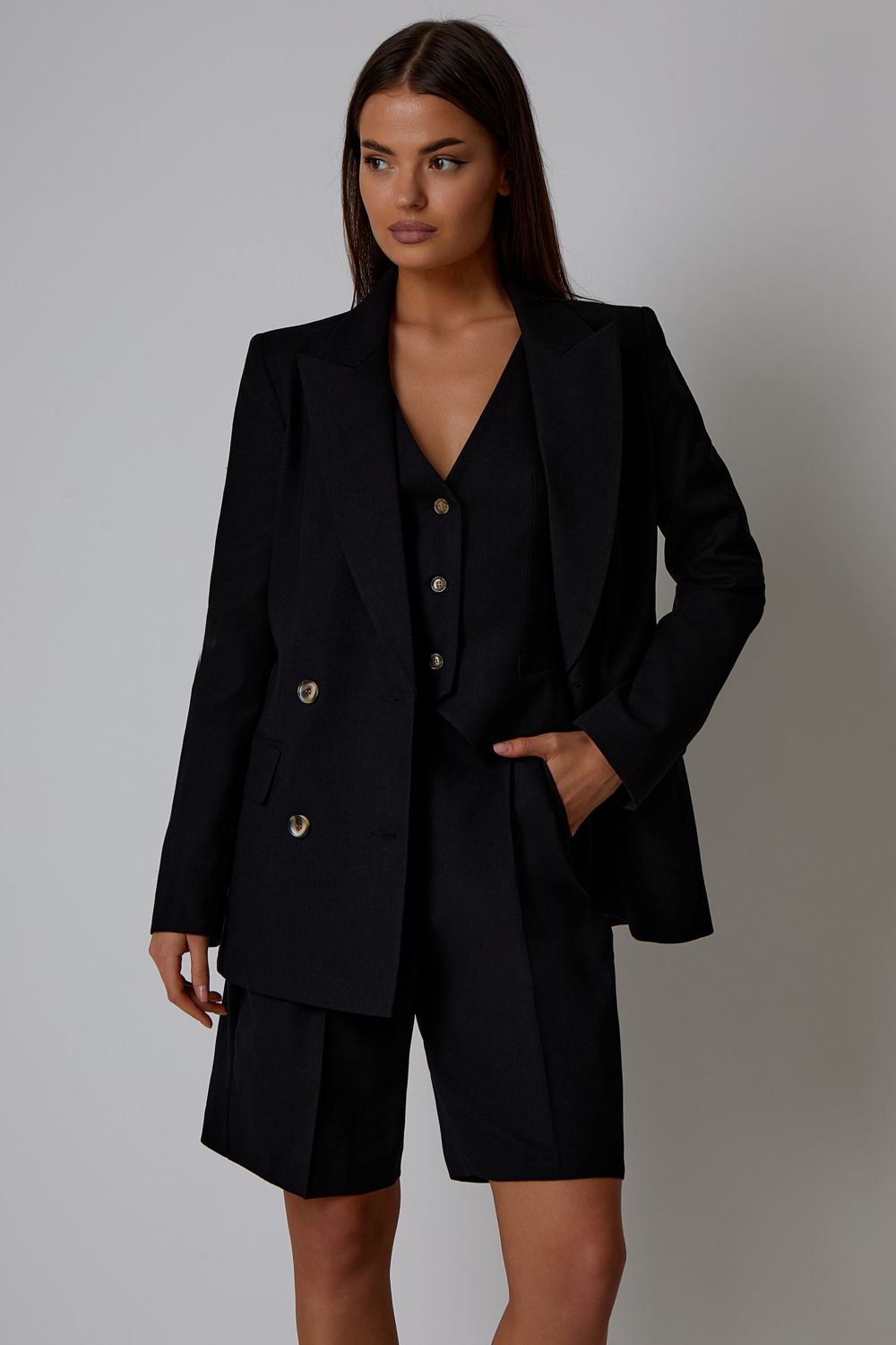 Классический двубортный жакет слегка приталенного кроя. Изделие на подкладке, застёгивается на пуговицы. К жакету идеально подойдут жилет (арт. 50901), брюки (арт. 51304), шорты (арт. 51625) и юбка (арт. 51069) из коллекции LN Family. Состав: 35% вискоза, 35% лен, 30% полиэстер. Подкладка: 95% полиэстер,5% эластан.