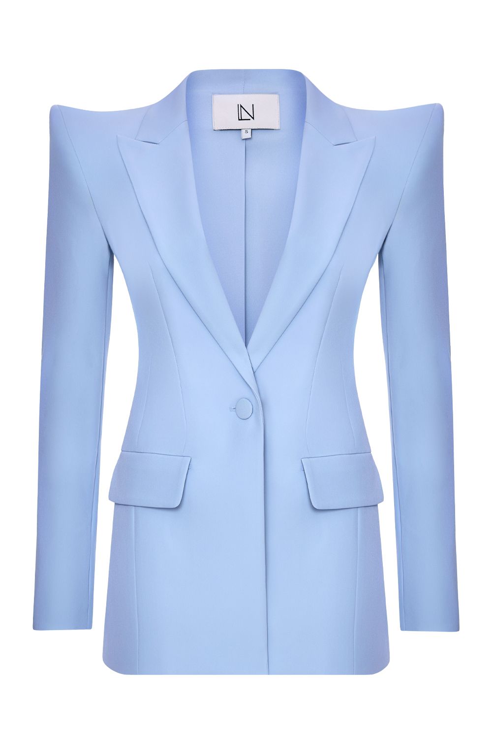 Однобортный жакет приталенного силуэта, имеет увеличенную линию плеча и плечевые накладки. Длина по спинке: 69 см. Состав: 72% полиэстер, 23% вискоза, 5% эластан, Подклад 95% полиэстер, 5% эластан
