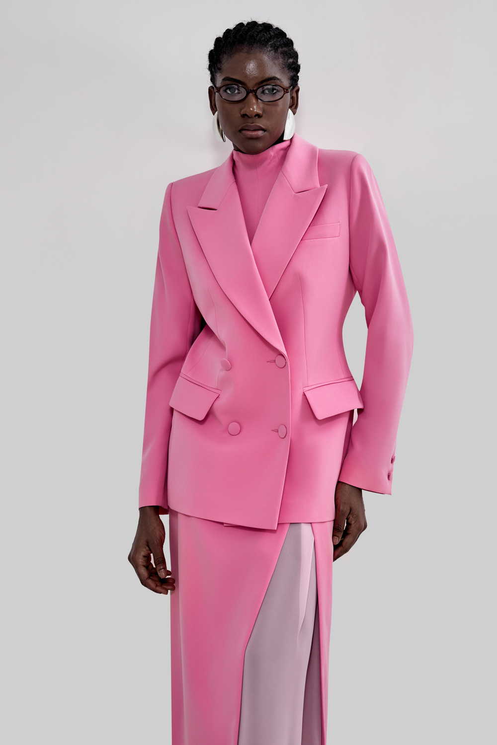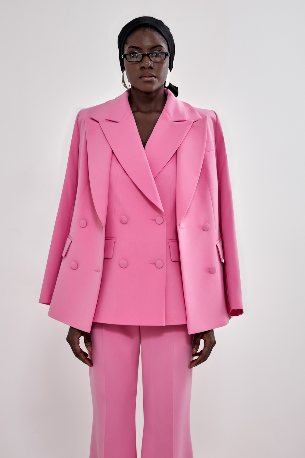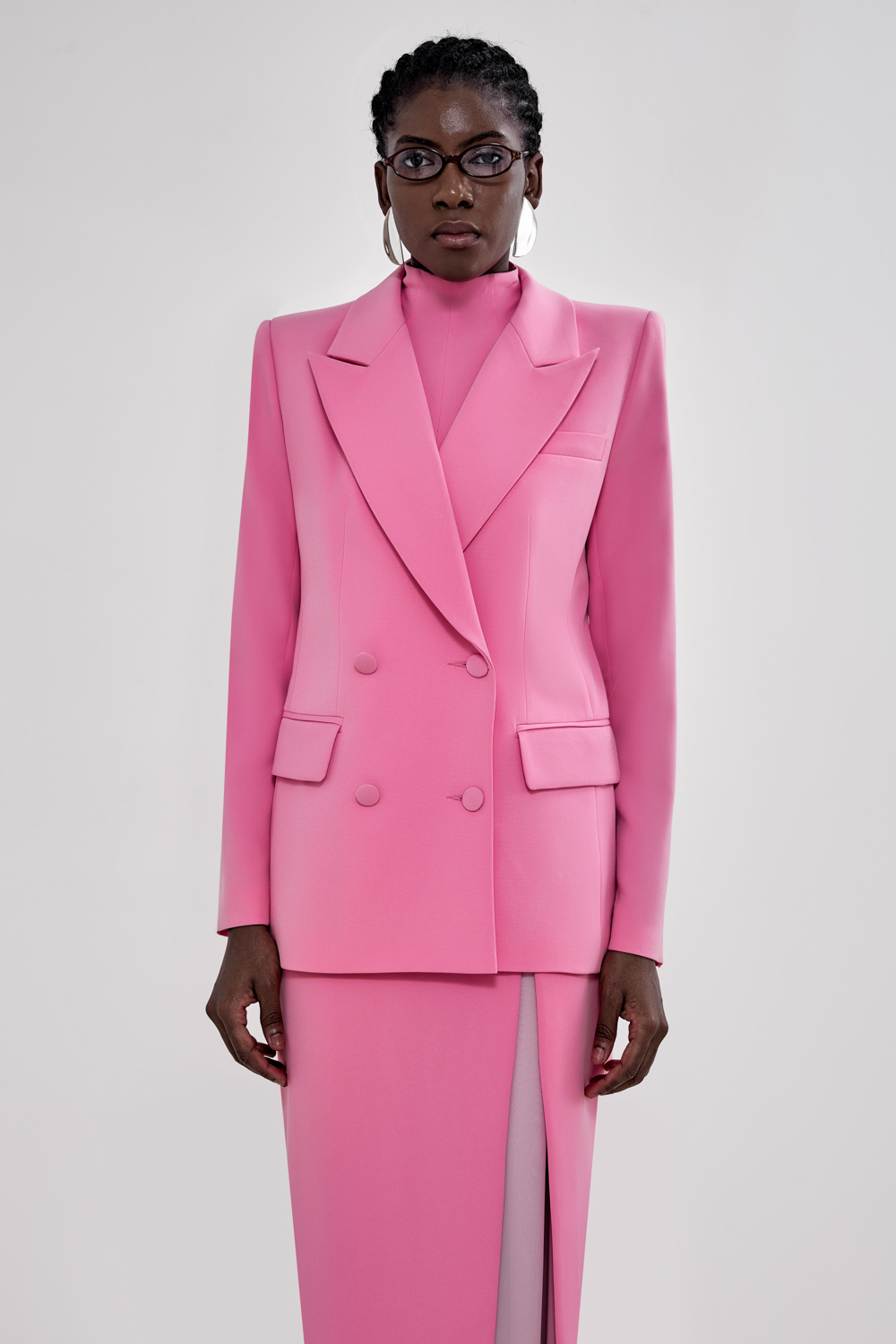 Жакет, который работает за весь образ. Прямой силуэт, чёткая линия плеч и двубортная застёжка — сочетание, которое делает изделие максимально универсальным. Он легко вписывается как в деловой, так и в вечерний гардероб. Состав: 71% полиэстер, 23% вискоза, 6% эластан Подкладка: 95% полиэстер, 5% эластан