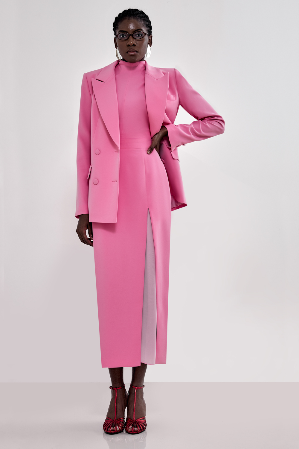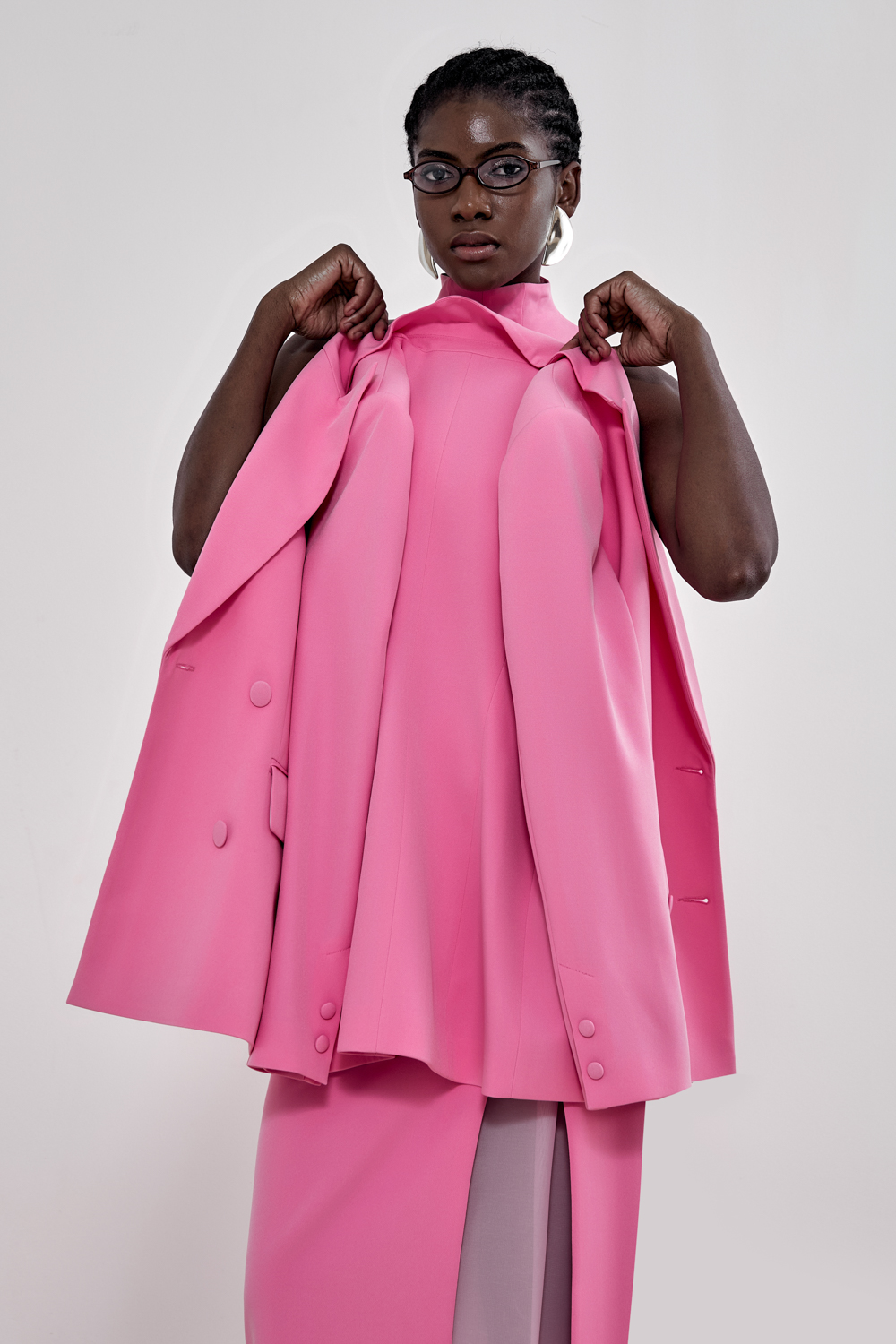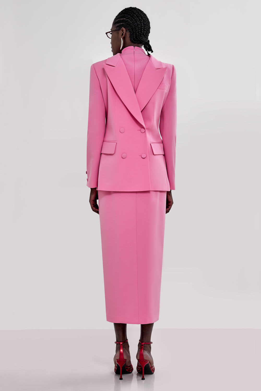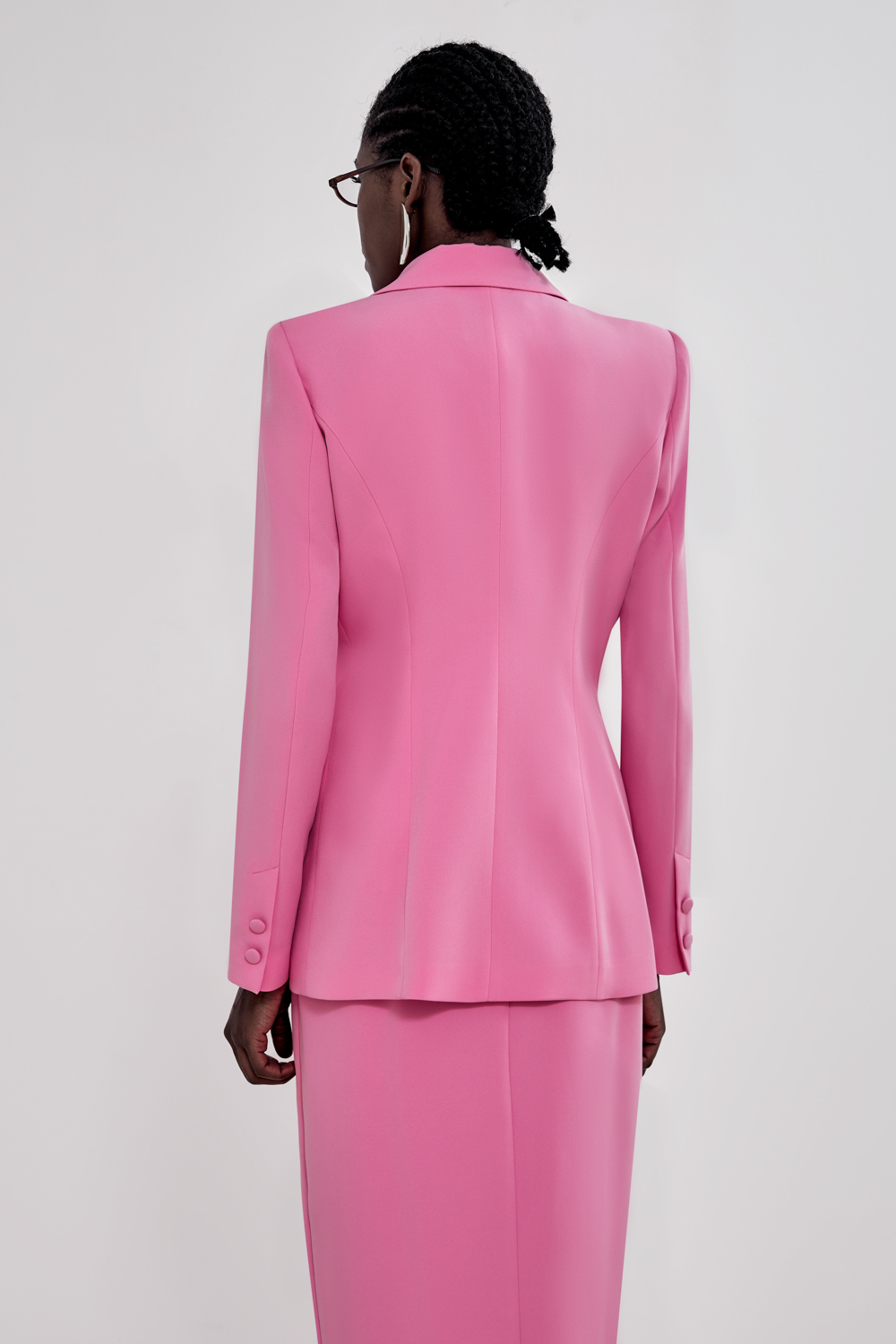 Жакет, который работает за весь образ. Прямой силуэт, чёткая линия плеч и двубортная застёжка — сочетание, которое делает изделие максимально универсальным. Он легко вписывается как в деловой, так и в вечерний гардероб. Состав: 71% полиэстер, 23% вискоза, 6% эластан Подкладка: 95% полиэстер, 5% эластан