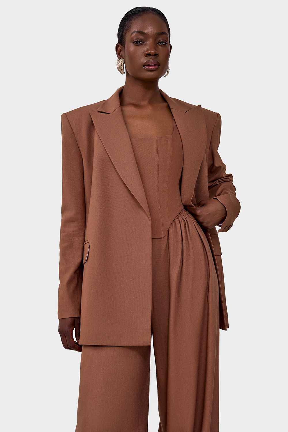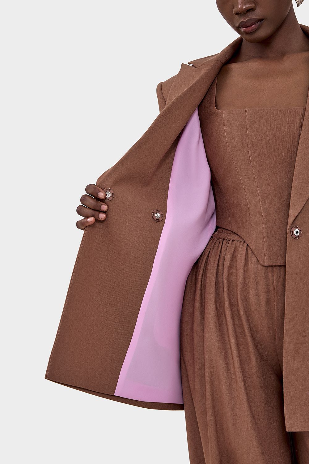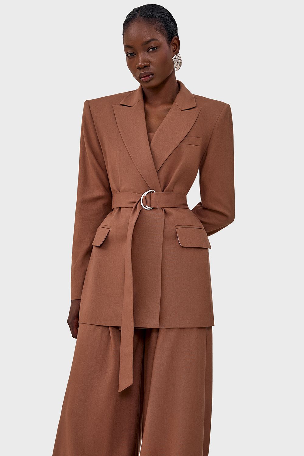 Жакет свободного кроя, прекрасно сочитающийся с поясом, который идет в комплекте. Состав: 70% вискоза, 30% лен; подкладка: 95% полиэстер, 5% эластан