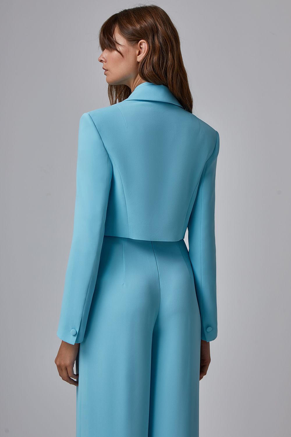 Укороченный жакет с объемными плечами, застегивается на одну пуговицу спереди. Состав: 62% полиэстер, 38% вискоза. Подкладка: 95% полиэстер, 5% эластан.
