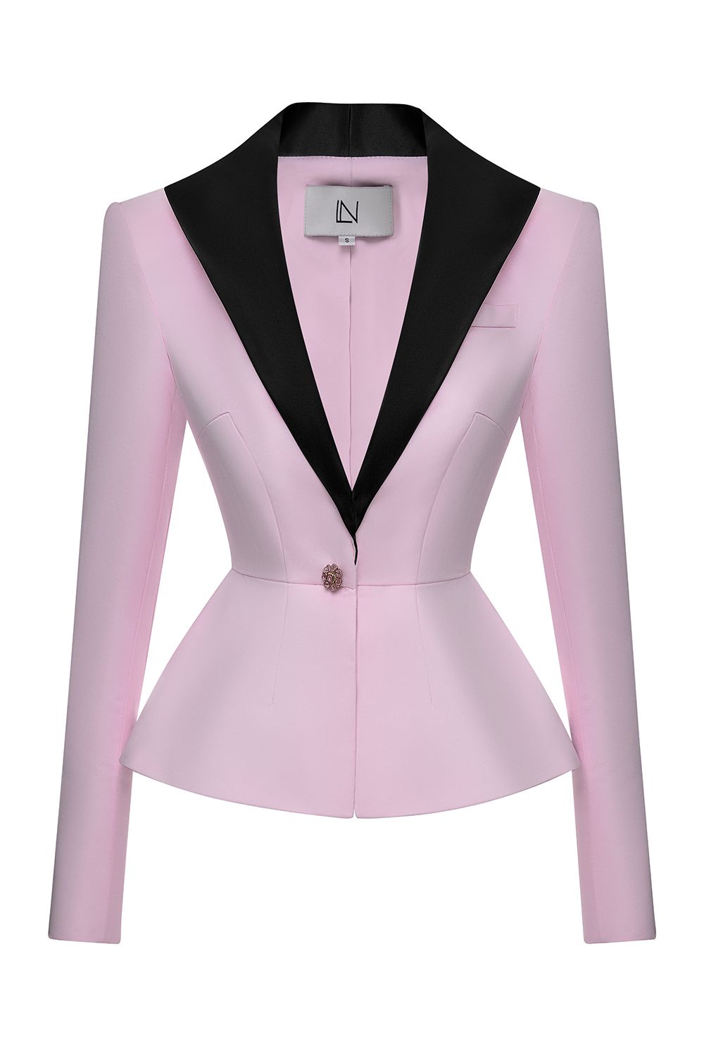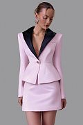 Жакет приталенного силуэта с акцентом на линии талии. Выполнен в лаконичном дизайне с контрастным широким лацканом и глубоким V-образным вырезом. Застёгивается на одну пуговицу. Чёткая посадка, структурированные плечи, вытачки формируют аккуратный силуэт. Состав: 97% полиэстер, 3% спандекс, подкладка 95% полиэстер, 5% эластан