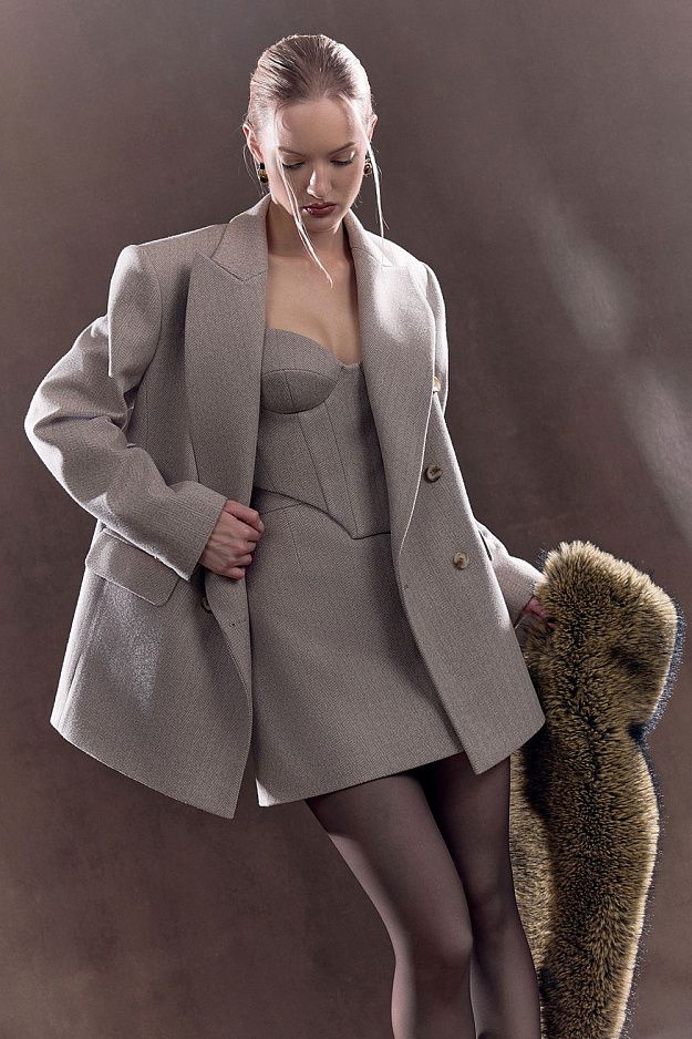 Элегантный двубортный жакет с выразительным рисунком «ёлочка». Классические широкие лацканы и ряды пуговиц придают образу утончённость и уверенность. Подкладка обеспечивает комфорт в носке. Идеально сочетается с брюками и юбкой из той же ткани. Состав: 75% полиэстер, 25% вискоза, Подклад 95% полиэстер, 5% эластан