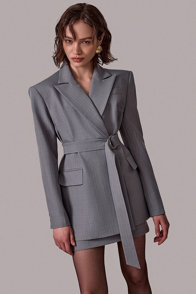 Жакет в тонкую полоску с поясом