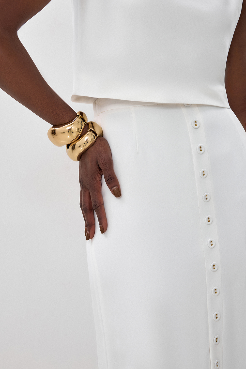 Потрясающий массивный браслет нестандартной формы, с помощью которого можно добавить уникальности любому образу. Состав: металл/акрил.