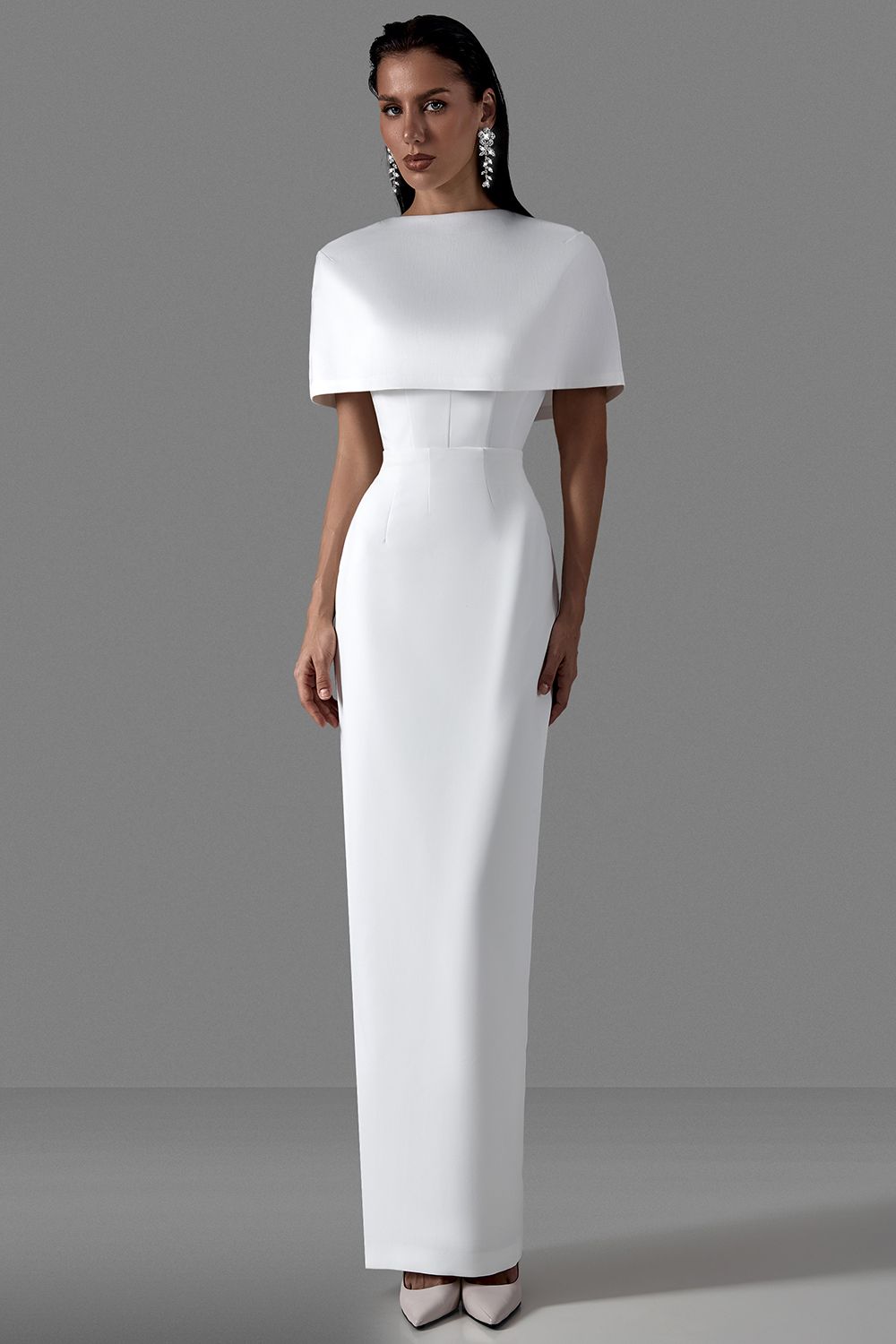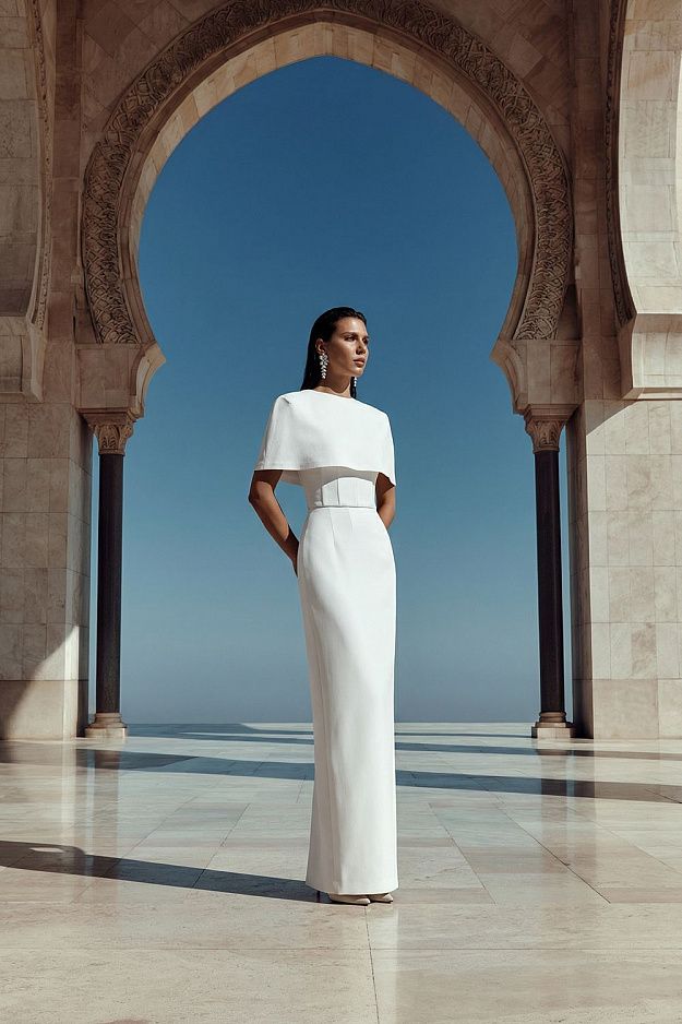 Минималистичный кейп, выполненный в архитектурной форме. Модель мягко перекрывает плечи и верхнюю часть руки, формируя строгий, но выразительный силуэт. Состав: 100% Полиэстер