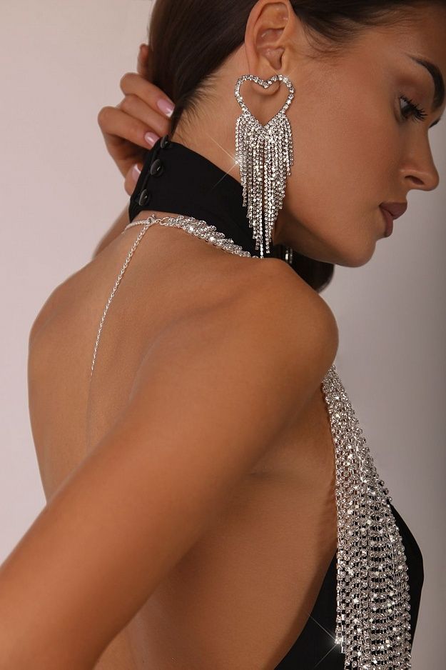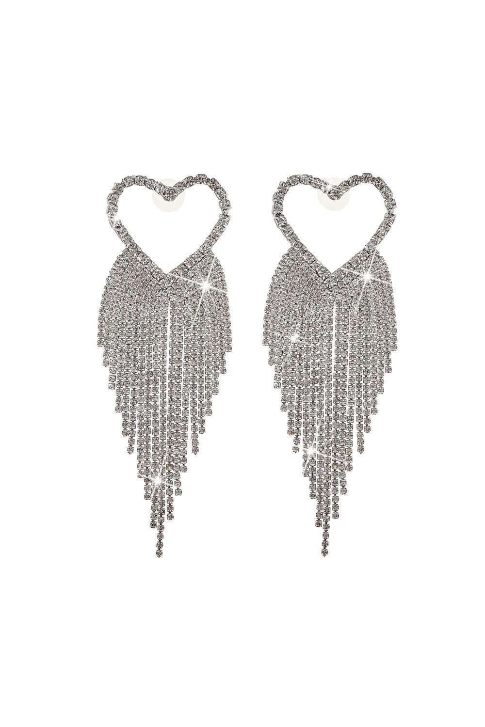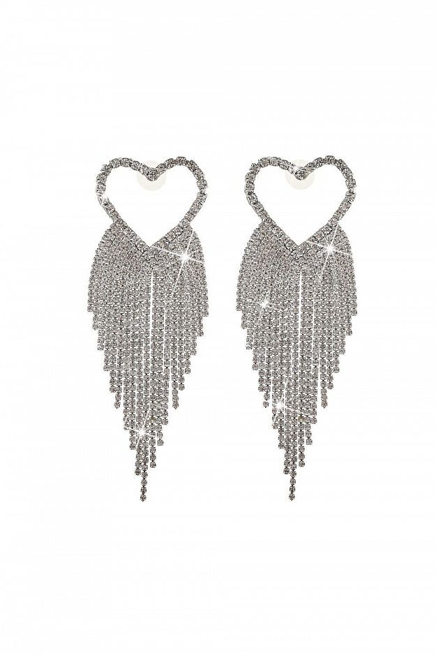 Блестящие в форме сердец с пышными подвесками. Застежка пусет. Состав: Металл/стразы