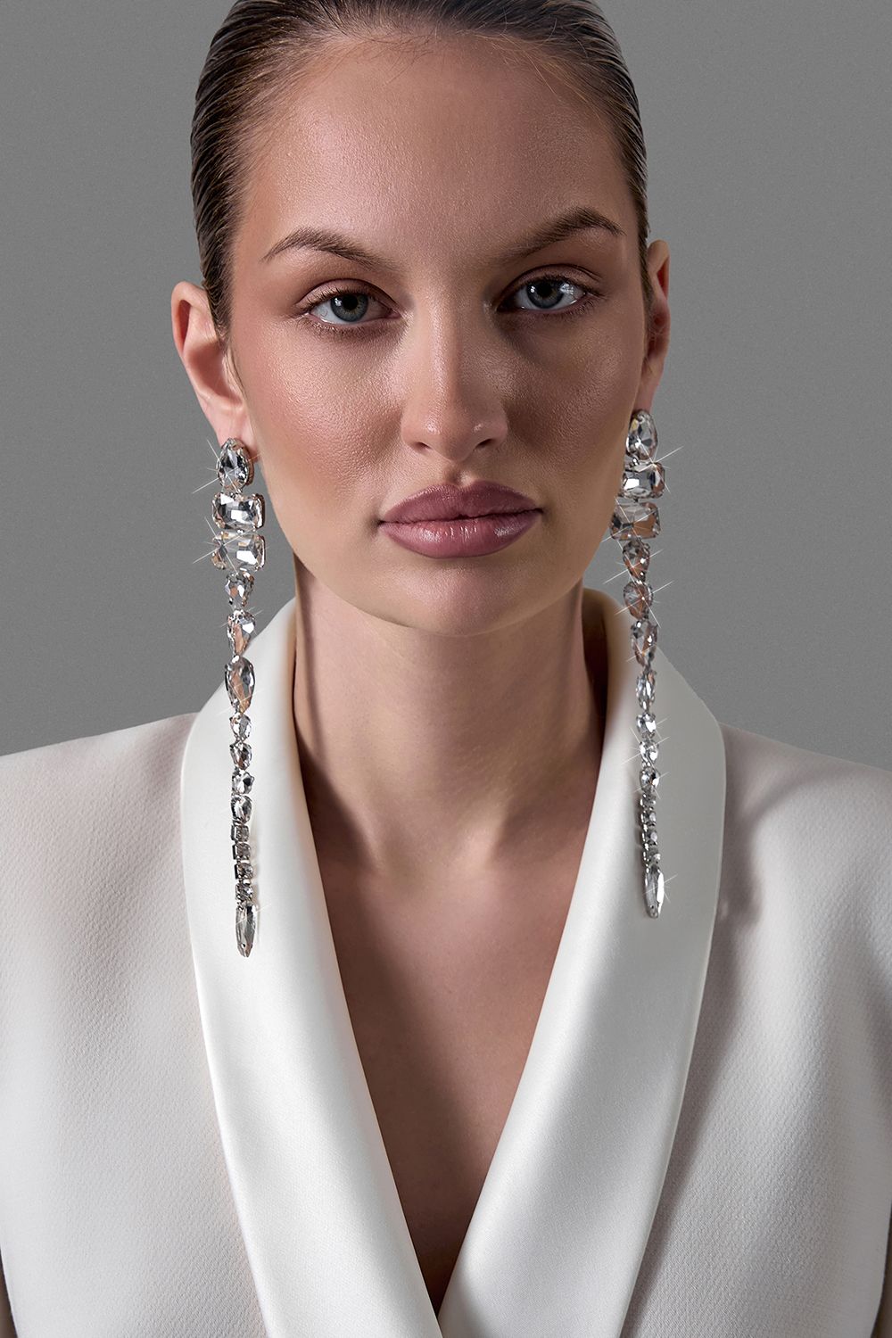 Длинные серьги с прозрачными кристаллами