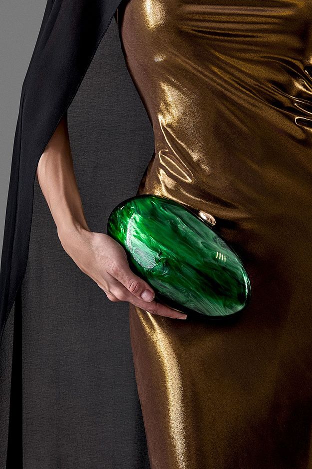 Эта элегантная клатч-сумка "Жемчужина Шелкового Века" воплощает утонченную роскошь и женственность. Сумка напоминает морскую жемчужину и имеет овальную форму и золотистую застежку в виде кольца, которая добавляет нотку гламура. Состав: 100% пластик