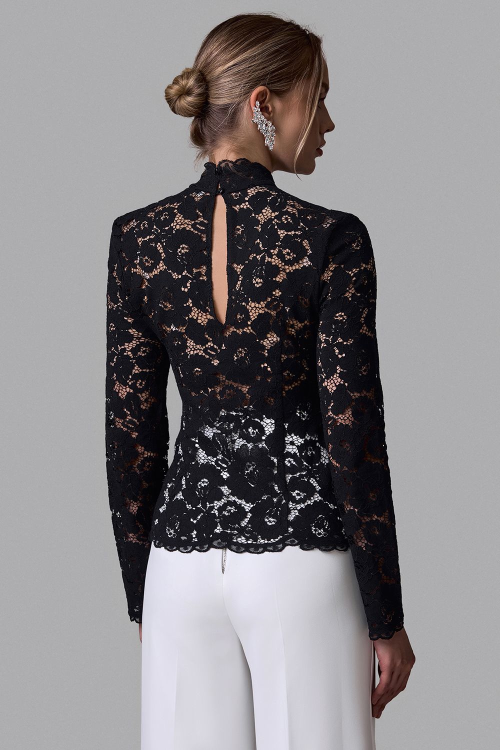 Элегантный топ из тонкого кружевного полотна. Изделие выполнено с высоким горлом и длинными рукавами, полностью покрытыми цветочным кружевом. Прилегающий силуэт подчёркивает линии фигуры, создавая утончённый и женственный образ. Идеален для вечерних выходов, сочетаний с жакетами, юбками или брюками с высокой посадкой. Состав: 80% хлопок, 20% полиэстер