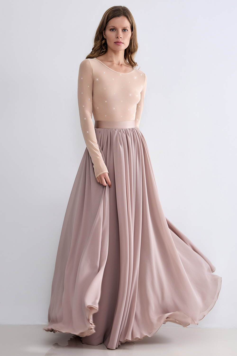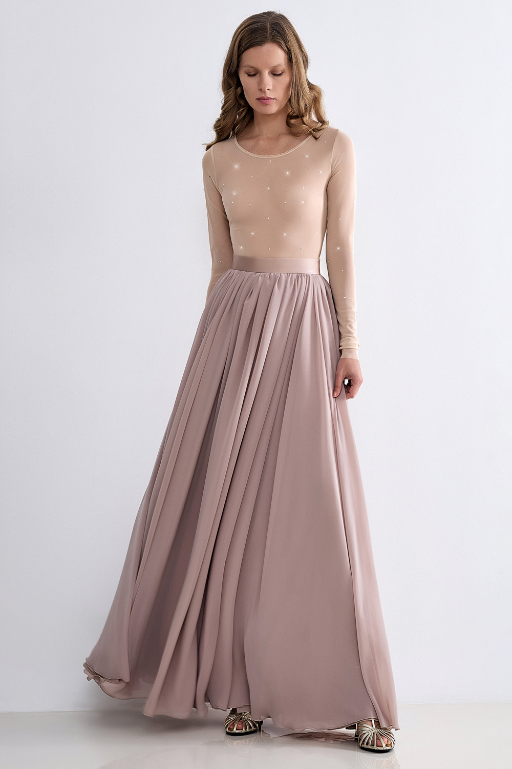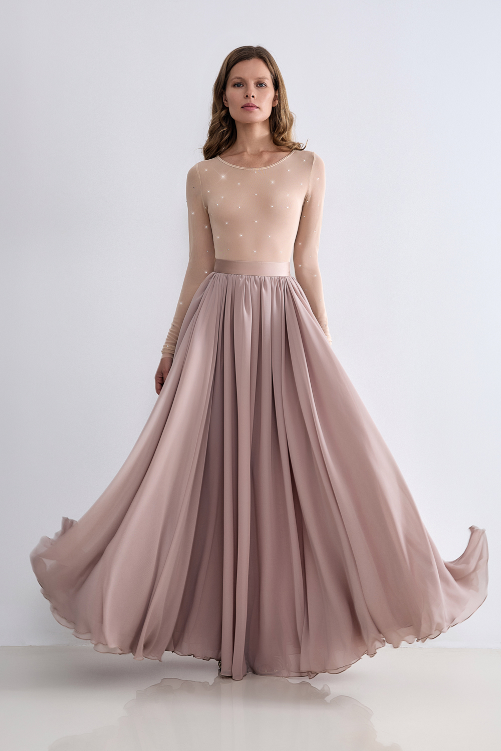 Обтягивающее боди из мягкого трикотажа с круглым вырезом, украшенное сверкающими стразами. Идеально в сочетании с юбкой (арт. 62522) из коллекции LN Family. Состав: 95% нейлон, 5% лайкра.