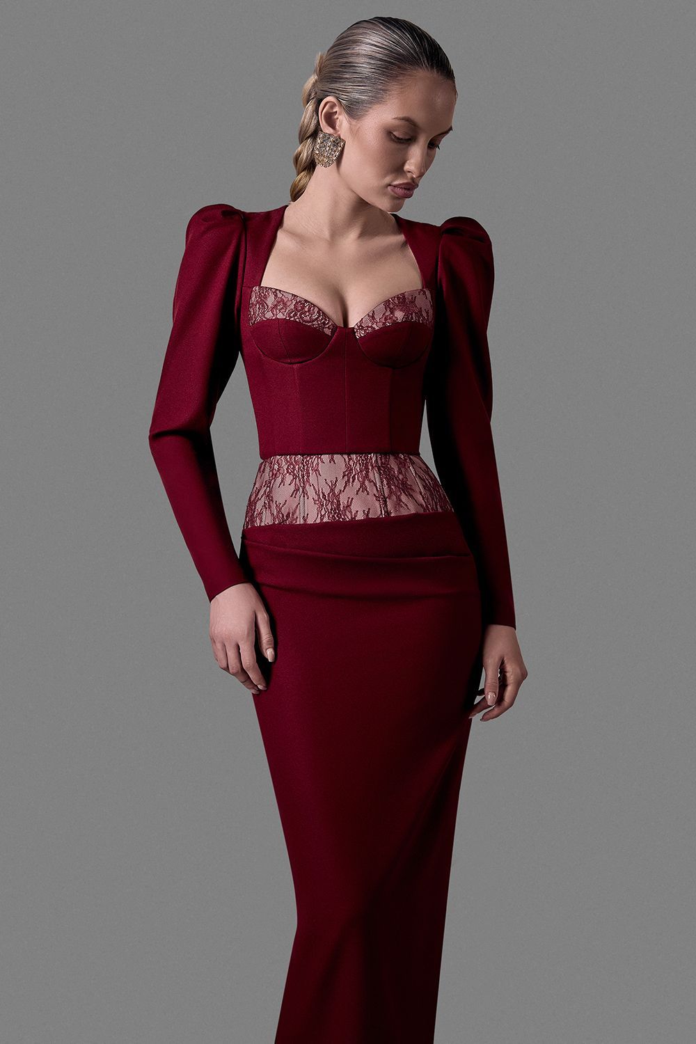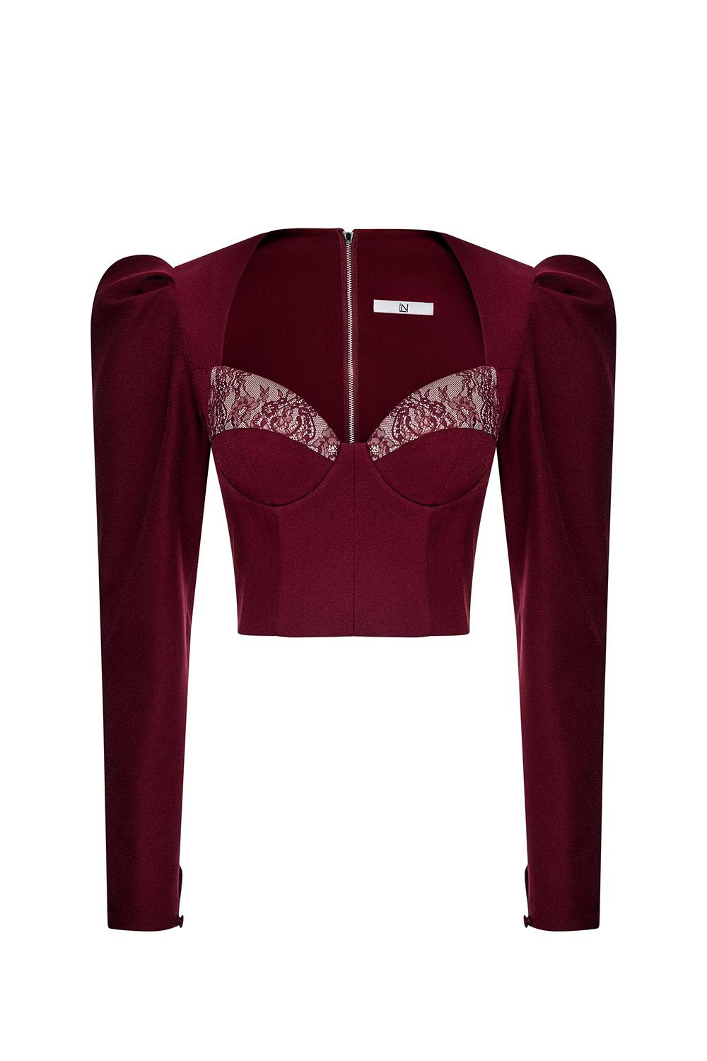 Элегантный корсет глубокого оттенка с утончёнными кружевными вставками создан для тех, кто ценит выразительный силуэт и эффектную архитектуру изделия. Жёсткая чашка и структурированные линии формируют красивую зону декольте, а полупрозрачная кружевная панель визуально подчёркивает талию, делая образ более женственным и изящным. Длинный рукав с мягким объёмом придаёт корсету современный, благородный характер. Состав: 95% полиэстер, 5% спандекс, Подкладка 97% полиэстер, 3% спандекс