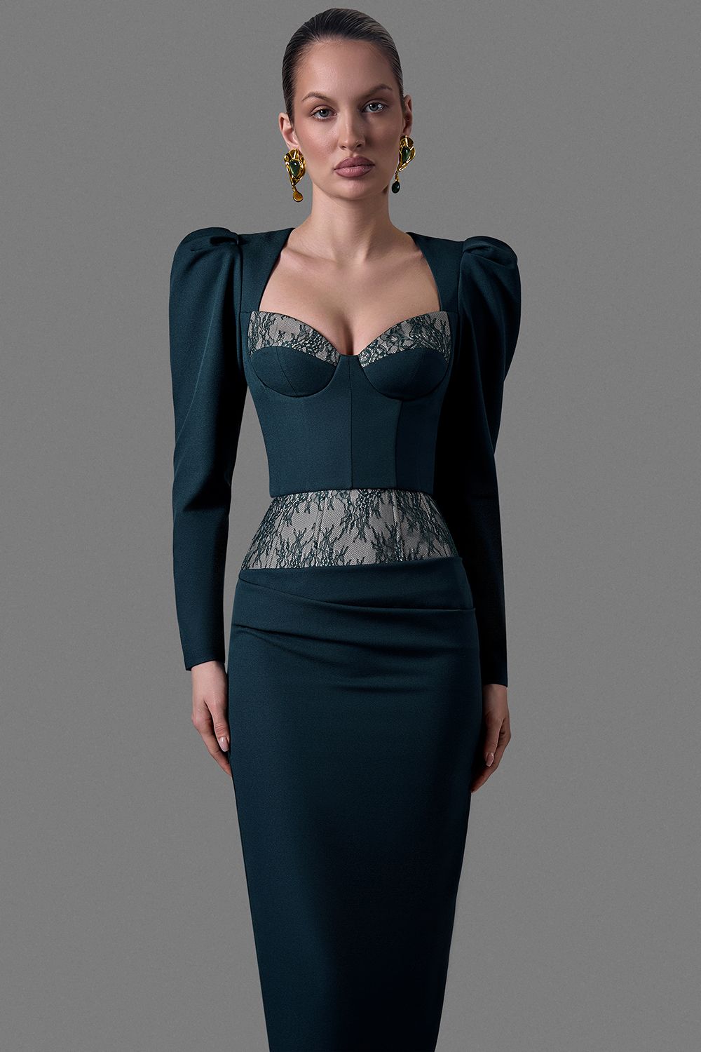Элегантный корсет глубокого оттенка с утончёнными кружевными вставками создан для тех, кто ценит выразительный силуэт и эффектную архитектуру изделия. Жёсткая чашка и структурированные линии формируют красивую зону декольте, а полупрозрачная кружевная панель визуально подчёркивает талию, делая образ более женственным и изящным. Длинный рукав с мягким объёмом придаёт корсету современный, благородный характер. Состав: 95% полиэстер, 5% спандекс, Подкладка 97% полиэстер, 3% спандекс
