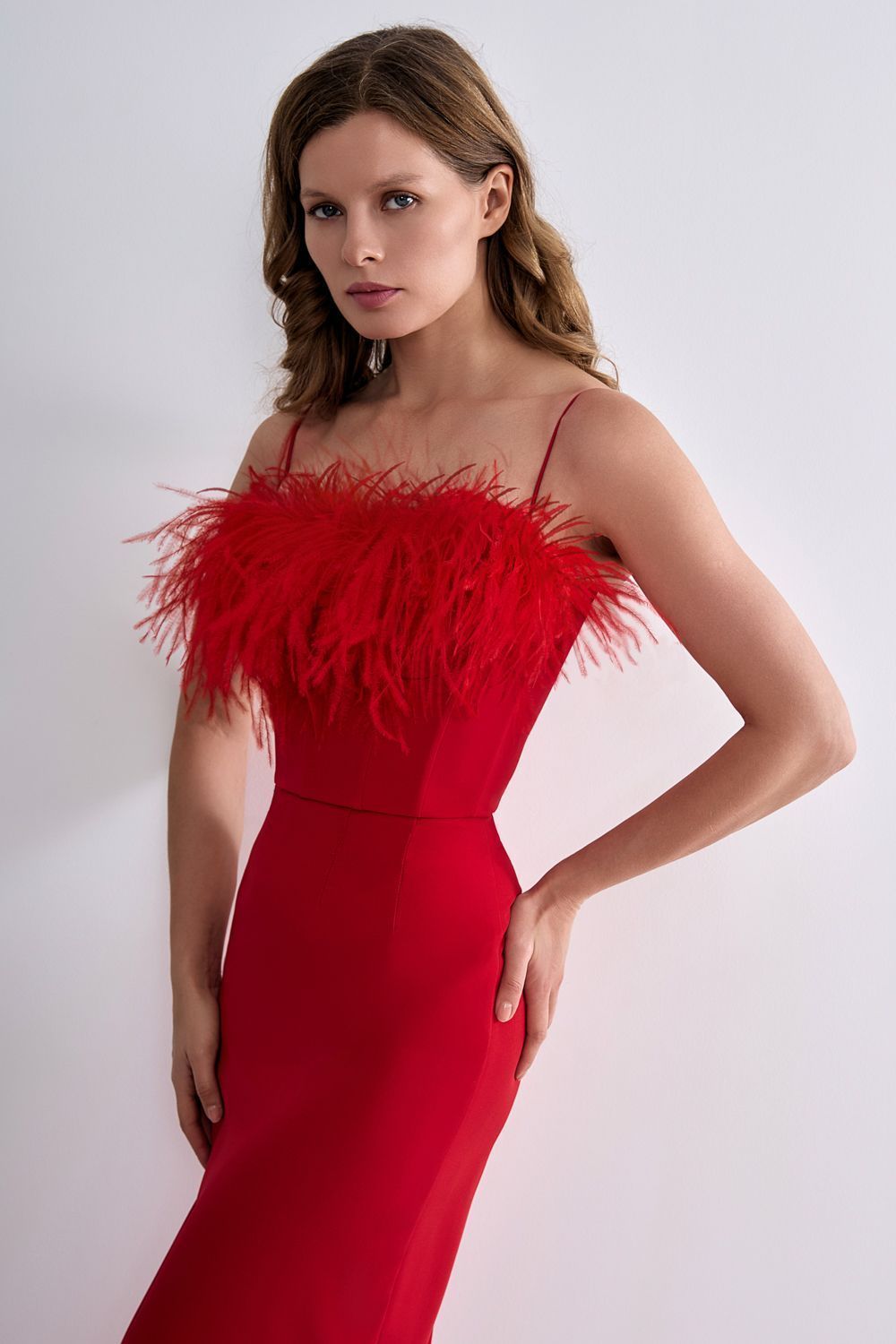 Кроп топ с перьями страуса