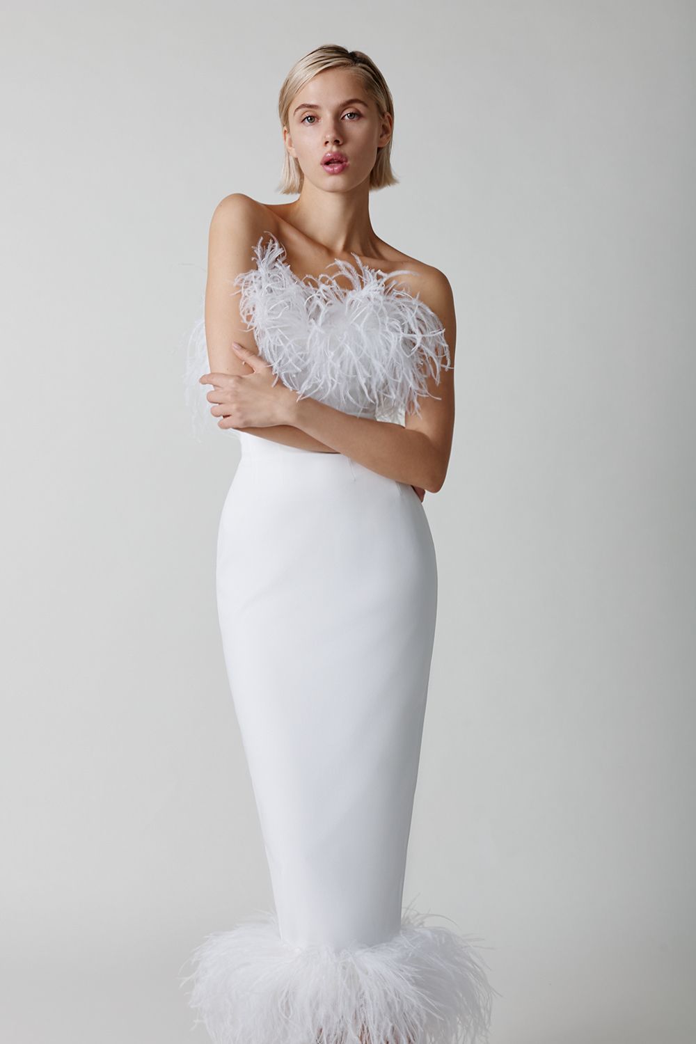 Кроп топ с перьями страуса