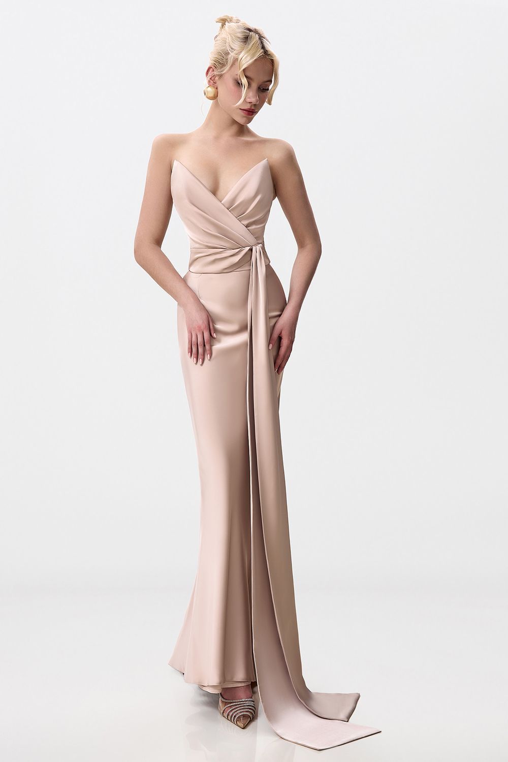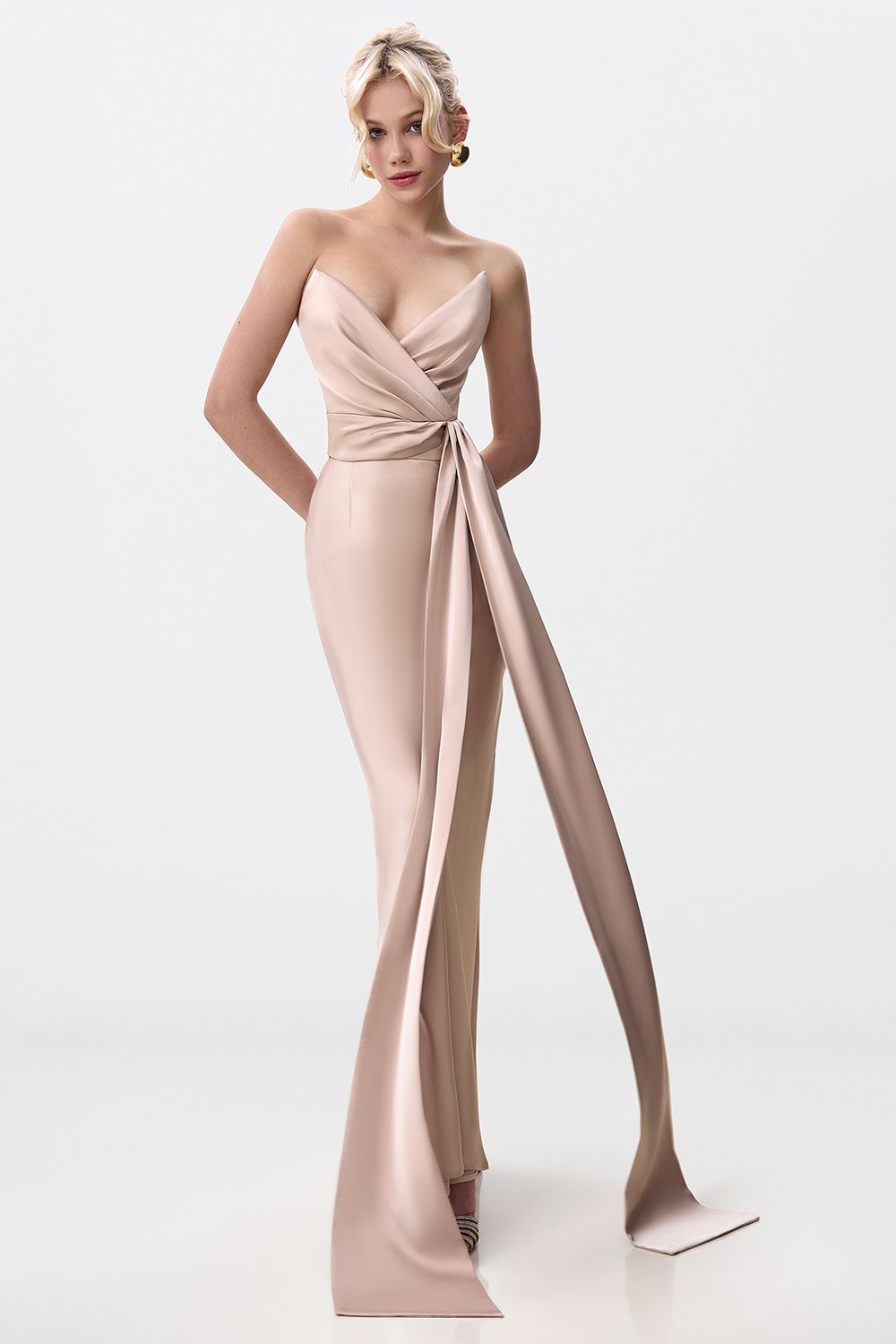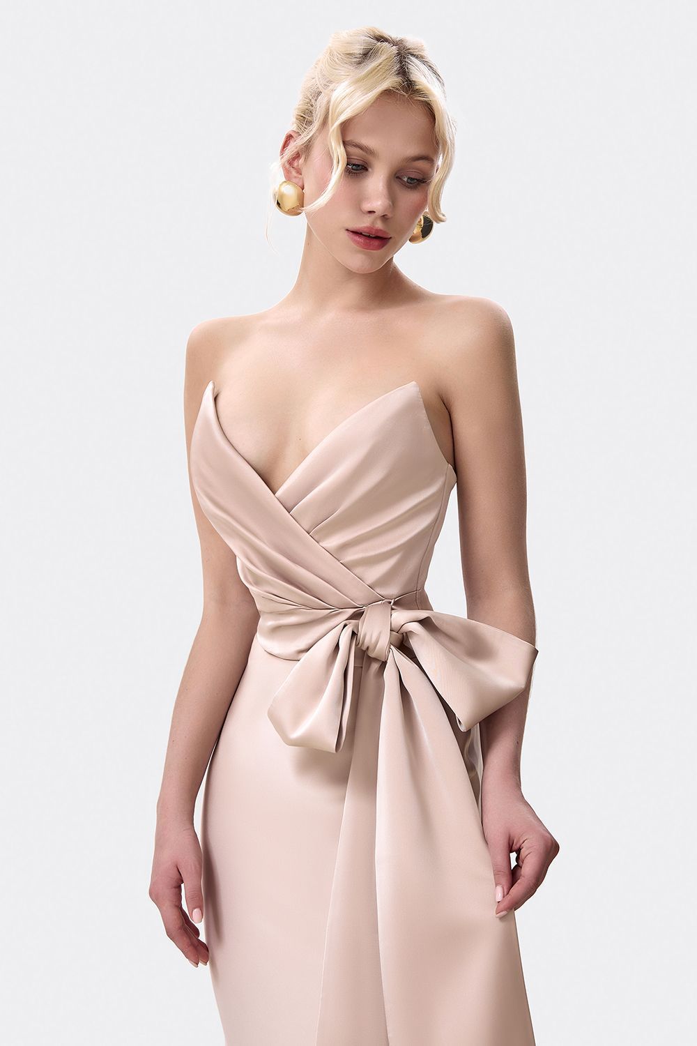 Топ с открытым верхом, акцентированным глубоким вырезом. Декоративный крупный бант, расположенный на передней части, служит центральным элементом дизайна. Концы банта удлинены, что придает образу дополнительную утонченность. Состав: 100% полиэстер, подкладка 97% полиэстер, 3% эластан