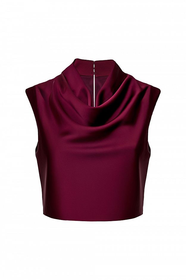Топ из атласа с мягким драпированным воротом. Лаконичный крой без рукавов подчеркивает линию плеч, а шелковистая фактура ткани придаёт образу утончённость и блеск. Состав: 95% полиэстер, 5% эластан; подкладка: 97% полиэстер, 3% эластан