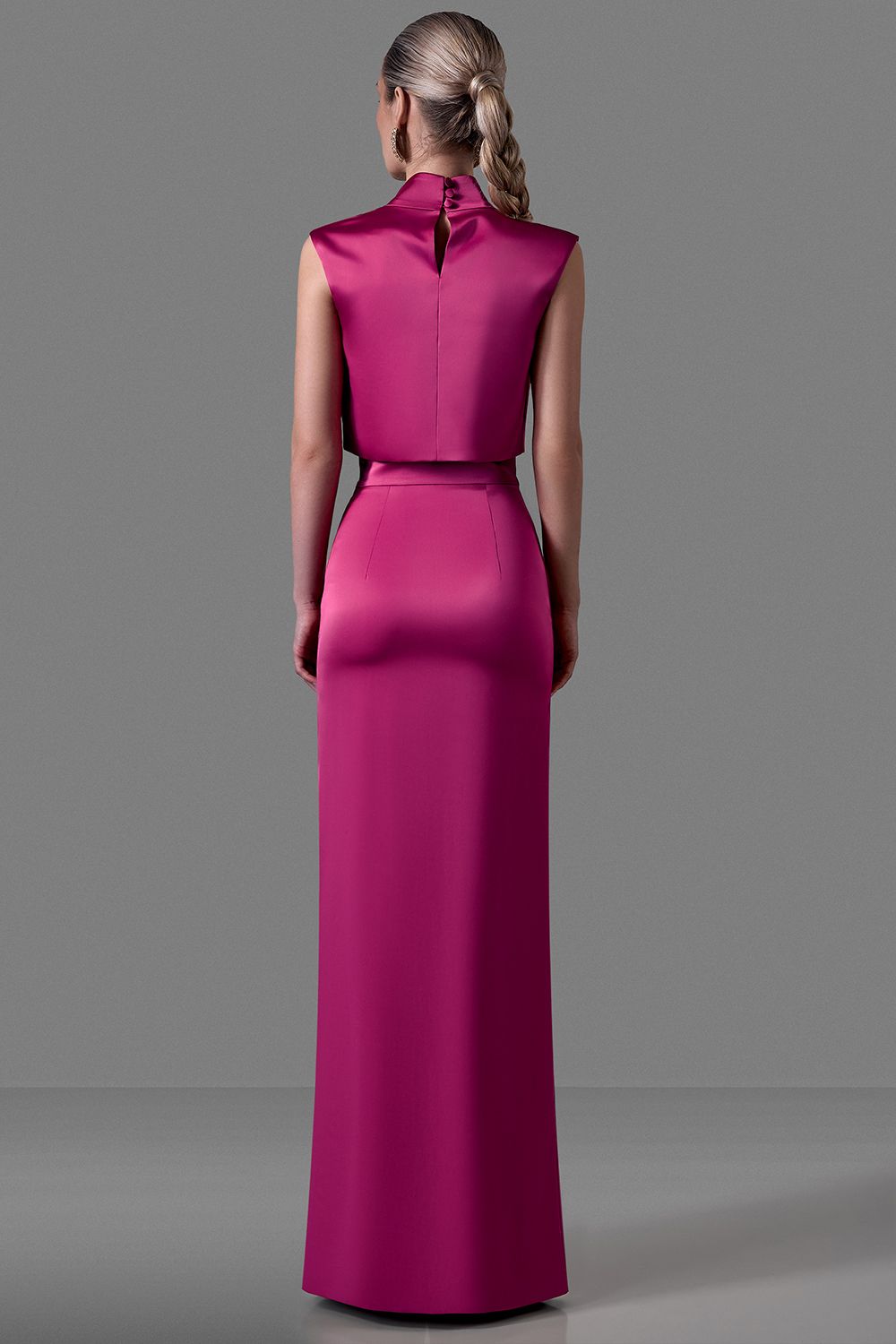 Топ из атласа с мягким драпированным воротом. Лаконичный крой без рукавов подчеркивает линию плеч, а шелковистая фактура ткани придаёт образу утончённость и блеск. Состав: 95% полиэстер, 5% эластан; подкладка: 97% полиэстер, 3% эластан