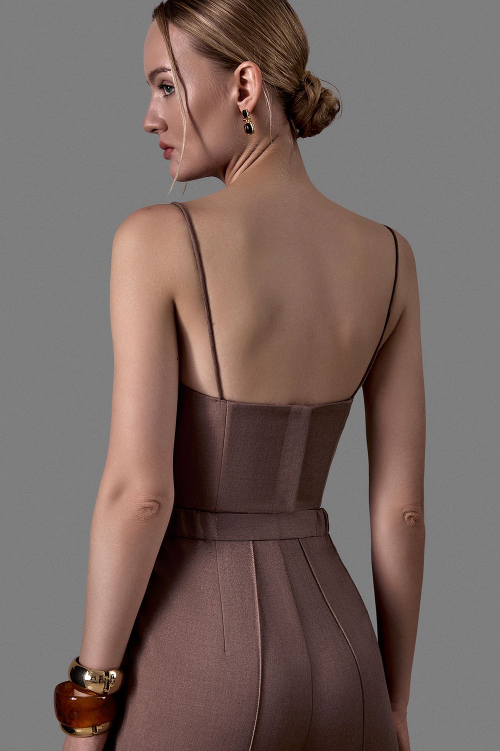 Топ из костюмной ткани с глубоким V-образным вырезом. Модель на тонких бретелях, с мягкими чашками и вставкой из сетки в зоне декольте для идеальной посадки.Состав: 65% полиэстер, 32% вискоза, 3% спандекс, Подкладка 95% полиэстер, 5% эластан