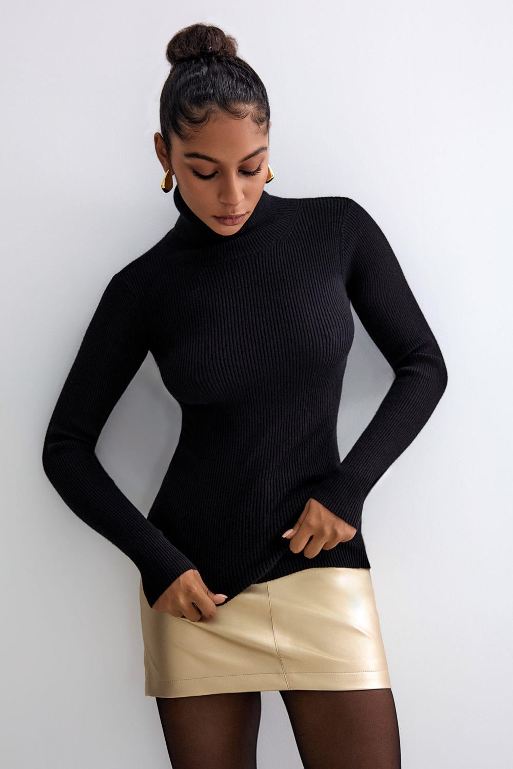 Универсальная водолазка в рубчик с высоким воротником и длинным рукавом. Водолазка идеально прилегает к телу, позволяя носить ее в прохладные дни как базовый слой с жакетами, кардиганами или пальто. Состав: 45% вискоза, 29% полиэстер, 17% нейлон, 9% шерсть.