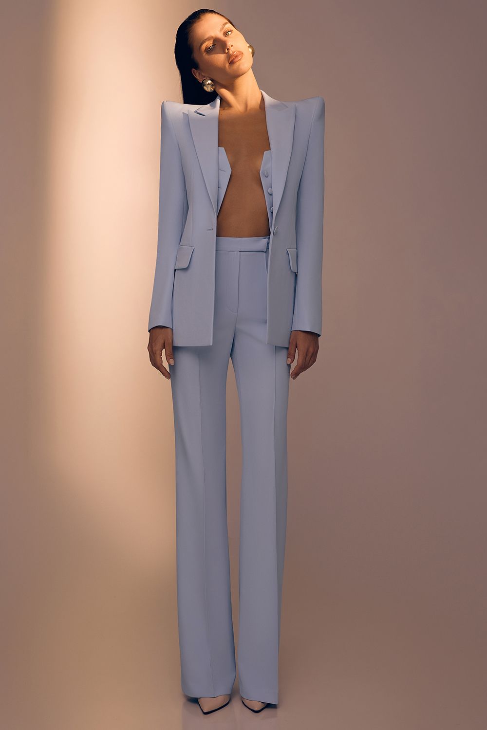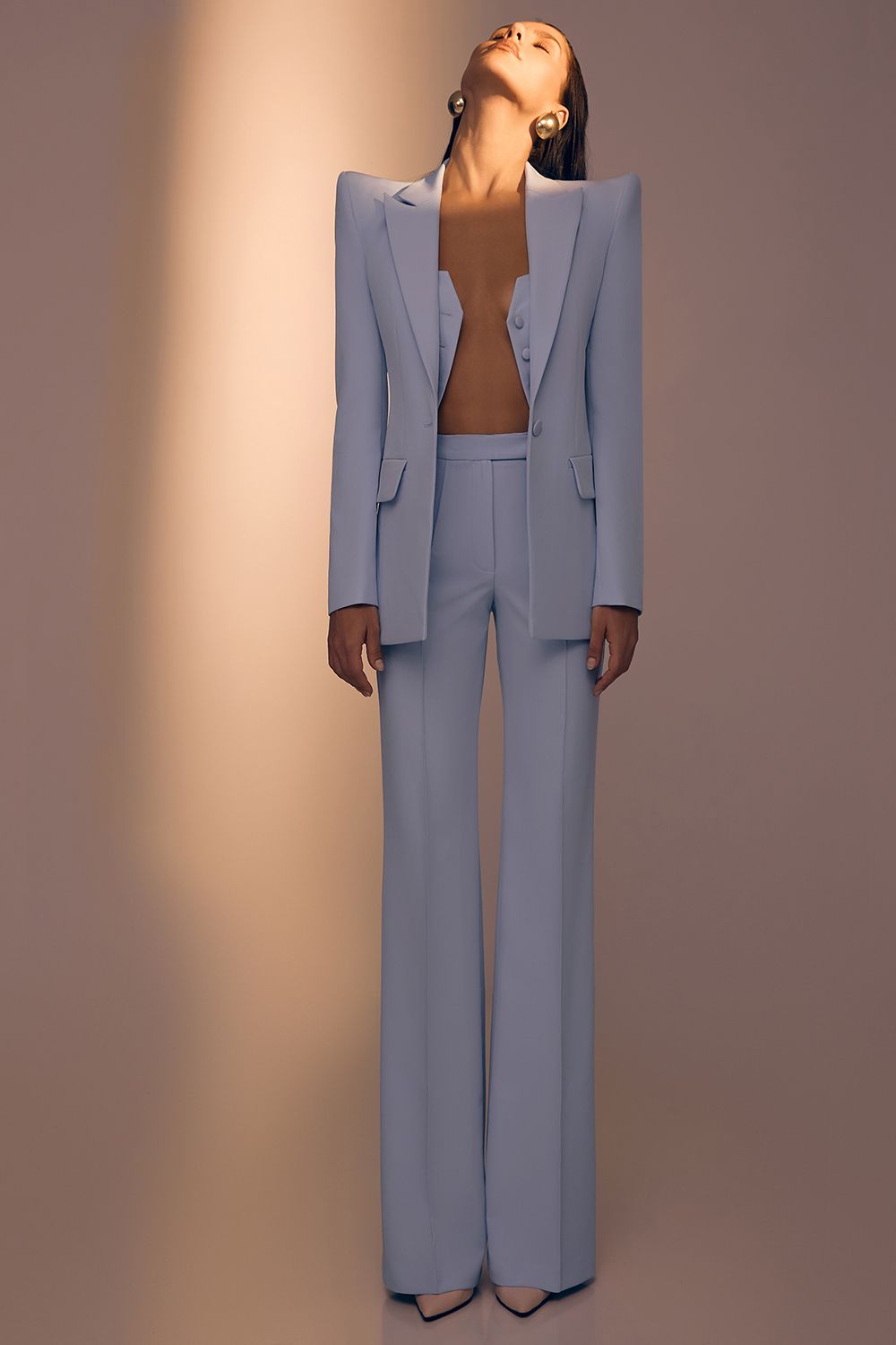 Брюки с высокой посадкой — основа элегантного костюмного гардероба. Чёткие стрелки визуально вытягивают силуэт, создавая стройную и выверенную линию. Лаконичный крой подчёркивает архитектуру формы и обеспечивает безупречную посадку. Модель легко сочетается с жакетом и жилетом, формируя цельный образ, или работает как самостоятельный элемент в повседневных сочетаниях. Универсальные брюки для деловых и вечерних выходов. Длина по шву 115 см. Состав: 72% полиэстер, 23% вискоза, 5% эластан