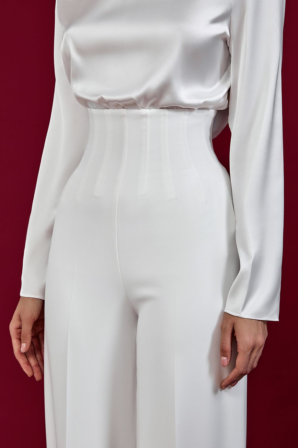 Брюки с корсетным поясом создают изящный силуэт и подчеркивают талию, добавляя образу женственности и силы. Высокая посадка визуально удлиняет ноги, а прямой крой обеспечивает безупречную посадку и комфорт. Идеальны как для делового гардероба, так и для эффектных вечерних выходов. Состав: 96% полиэстер, 4% эластан Подклад 95% полиэстер, 5% эластан