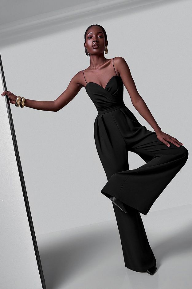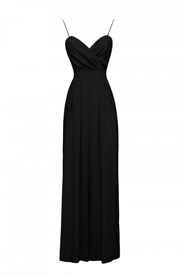 Элегантный комбинезон с открытыми плечами. Комбинезон подчеркивает элегантность и стройность силуэта. Лиф с эффектом запаха и деликатной драпировкой выгодно акцентирует зону декольте. Тонкие бретели придают образу утонченную женственность и визуально вытягивают шею. Высокая линия талии визуально удлиняет ноги, а широкие брючины свободного кроя придают образу свободу движений. Состав: 100% полиэстер, подкладка 95% полиэстер, 5% эластан