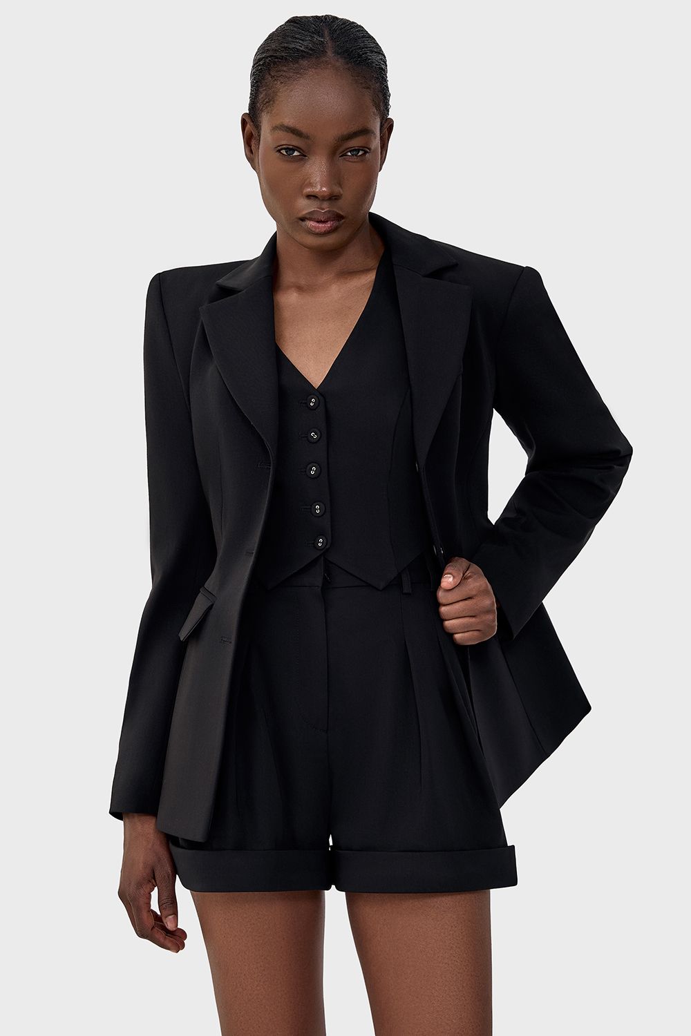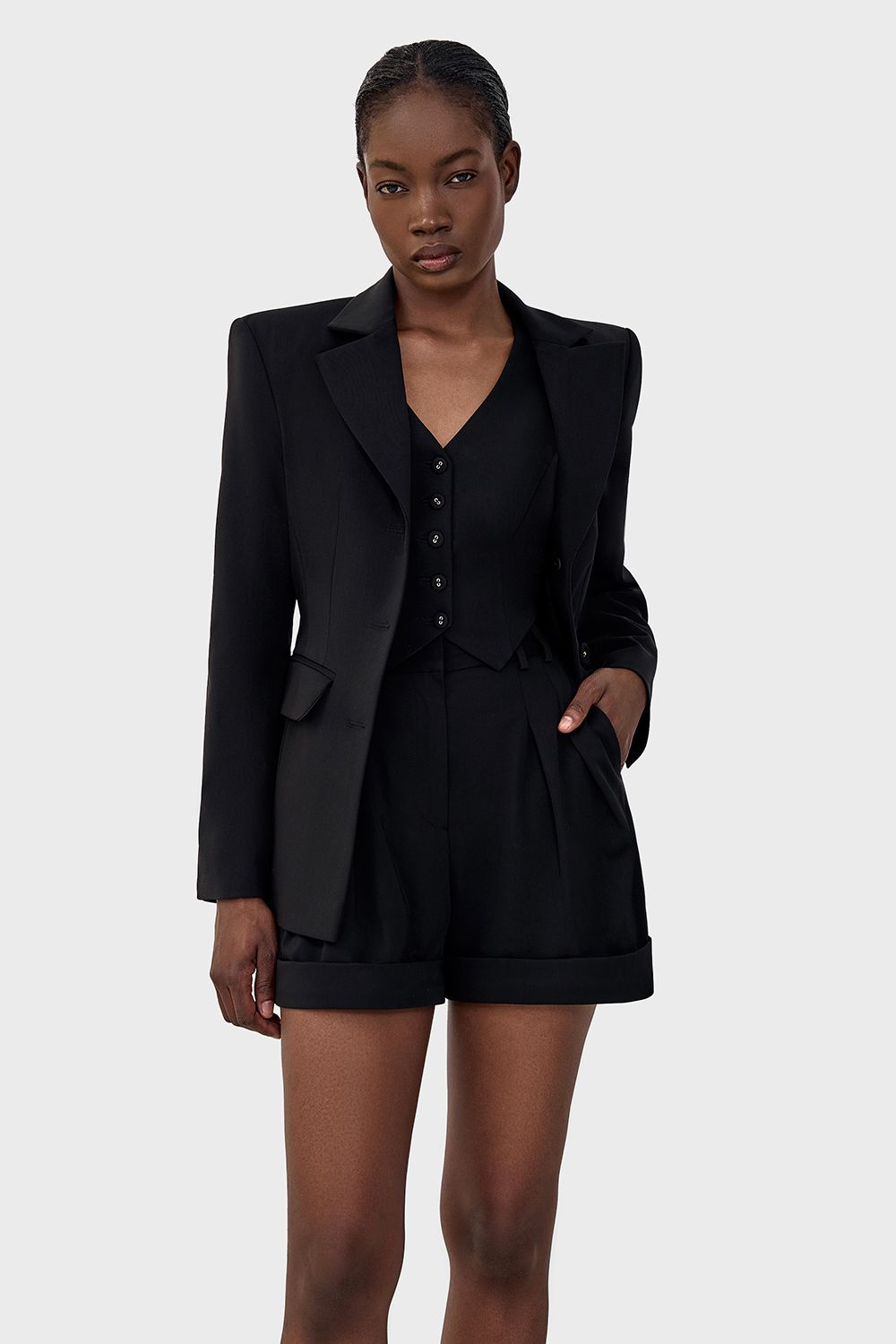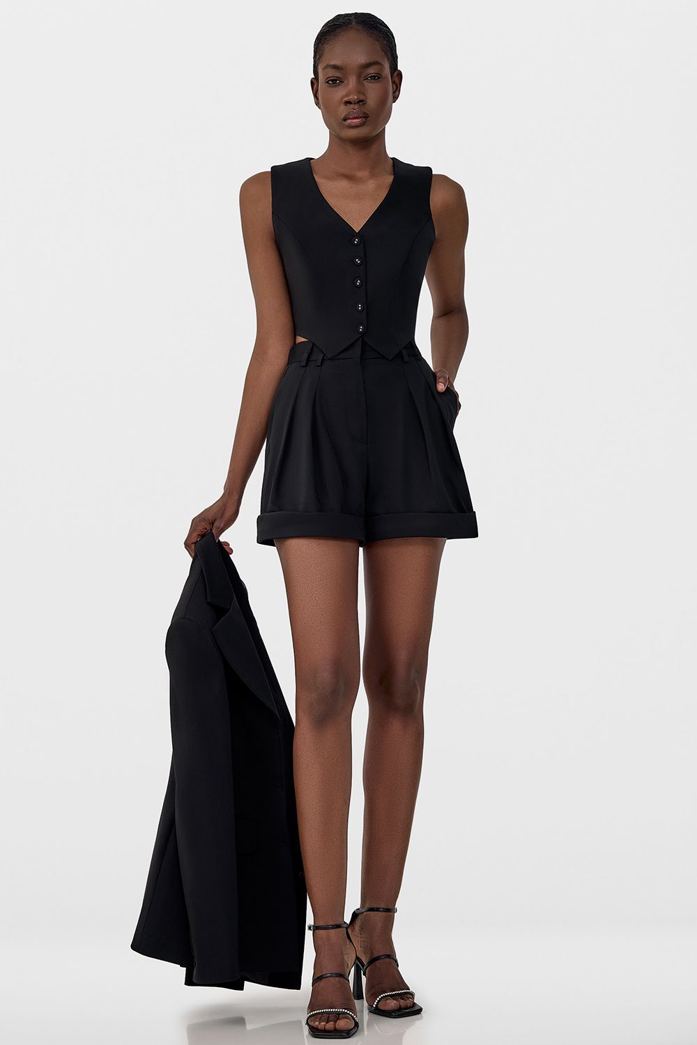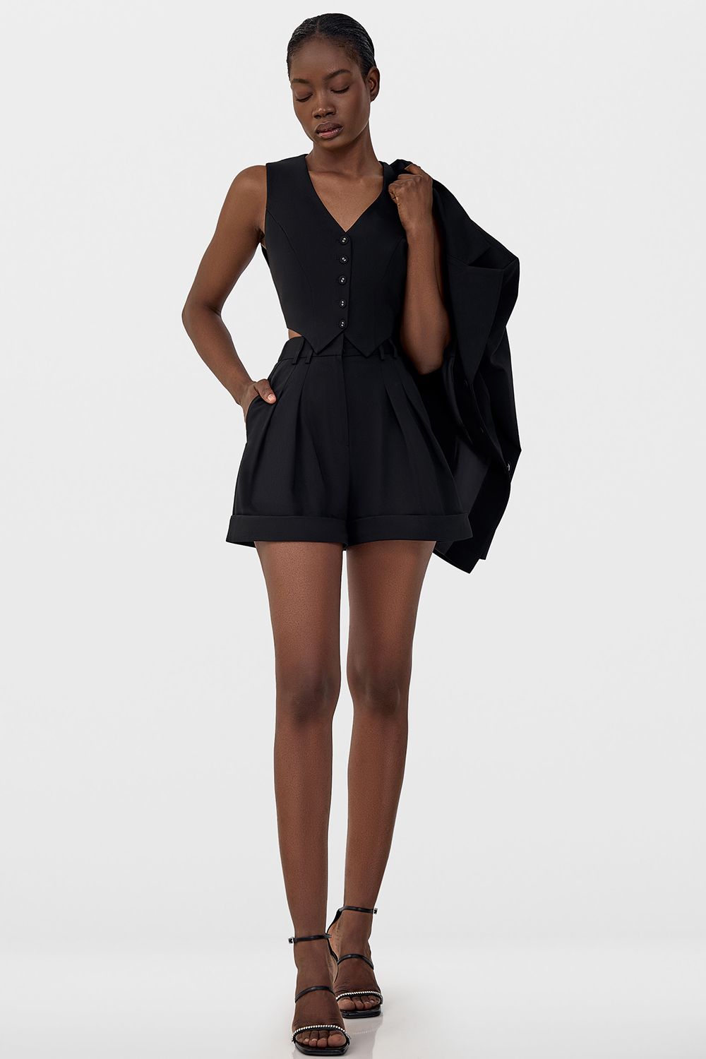 Шорты, выполненные из высококачественной ткани, имеют свободную посадку. Они дополнены складками на талии, которые придают им изысканности и женственности.Длина; 39 см (размер: М).. Состав: 63% вискоза, 32% полиэстер, 5% эластан