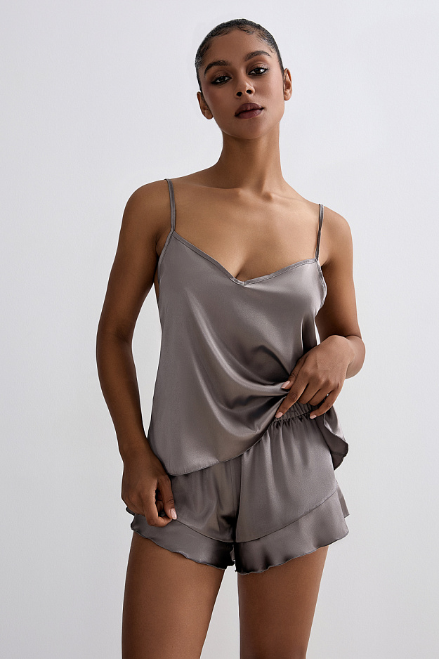 Комплект шорты и майка на бретелях из примиального атласа. Состав: 95%полиэстер 5%спандекс