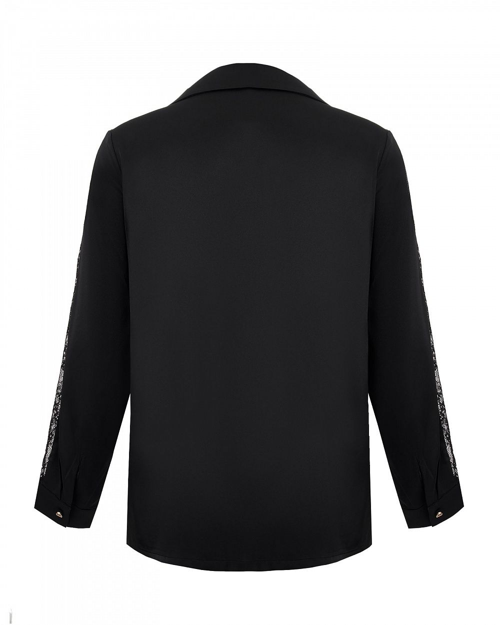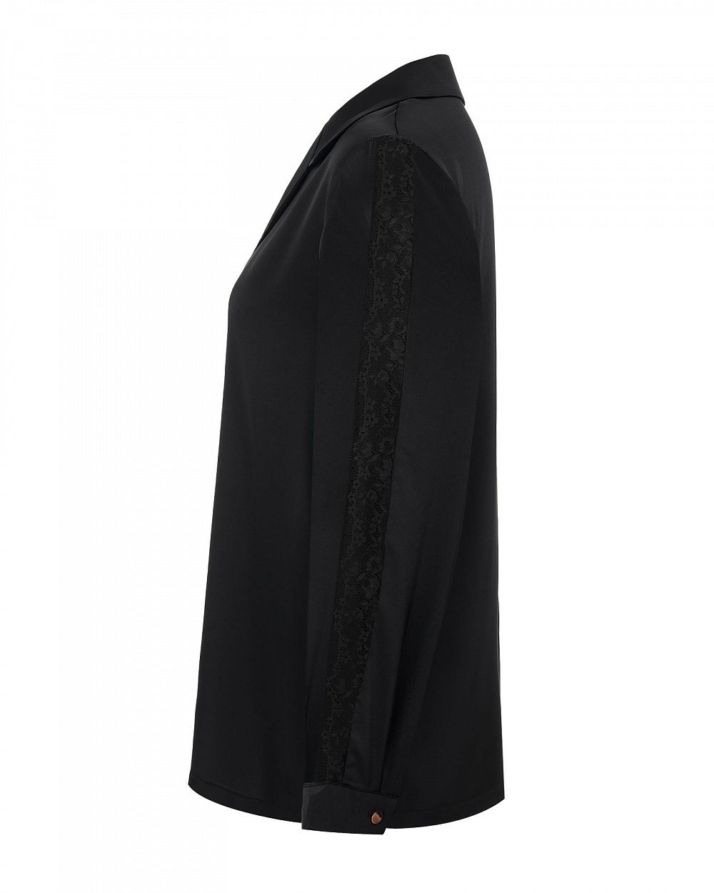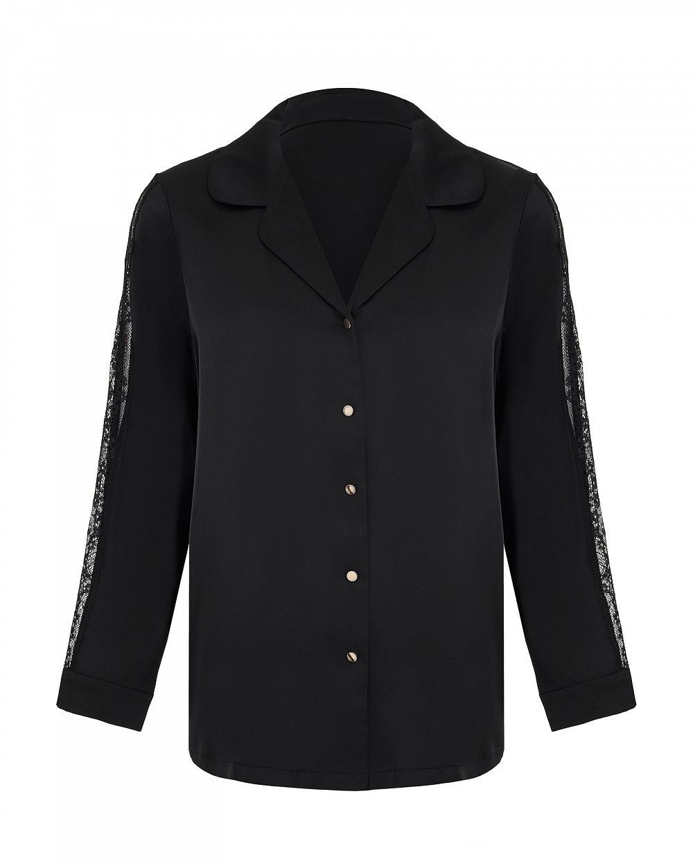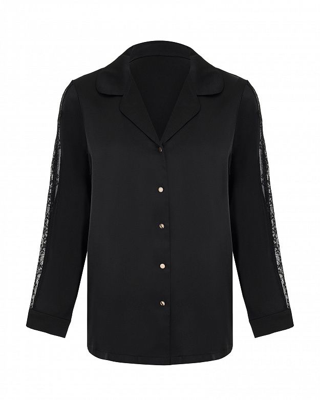 Блуза свободного силуэта, выполненная в молочно-белом оттенке. Мягкий отложной воротник и аккуратный ряд перламутровых пуговиц создают утончённый, аккуратный образ. Главный акцент - прозрачные кружевные вставки вдоль всей длины рукавов: они добавляют лёгкости, женственности и тонкого контраста. Состав: 95% полиэстер, 5% спандекс