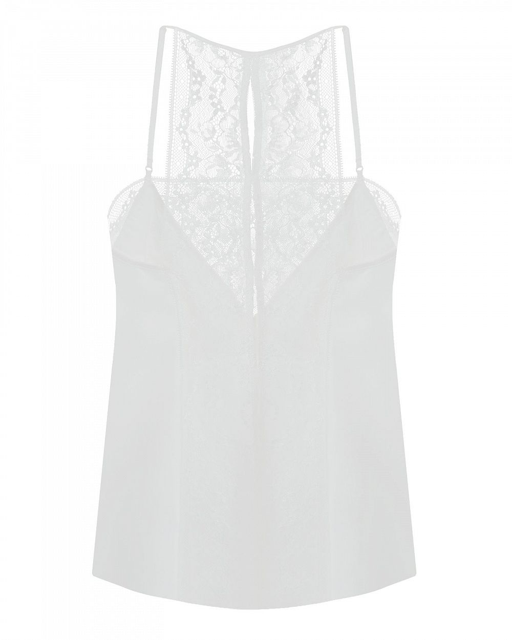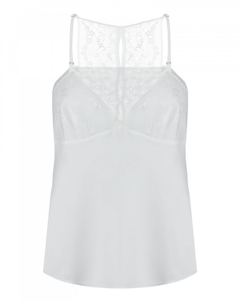 Элегантный топ, который сочетает мягкость гладкой ткани и чувственность изысканного кружева. Модель оформлена кружевным лифом с визуальным V-эффектом, плавно переходящим в высокую кружевную спинку — утончённый акцент, который делает силуэт более изящным и выразительным. Тонкие регулируемые бретели обеспечивают комфортную посадку, а лаконичный прямой крой добавляет универсальности.Состав: 95% полиэстер, 5% спандекс