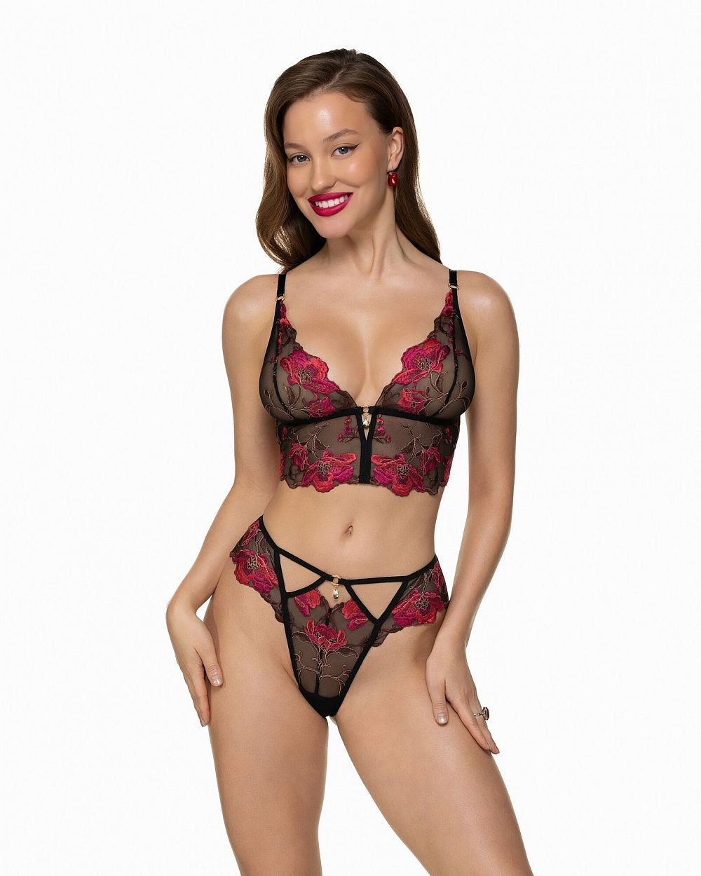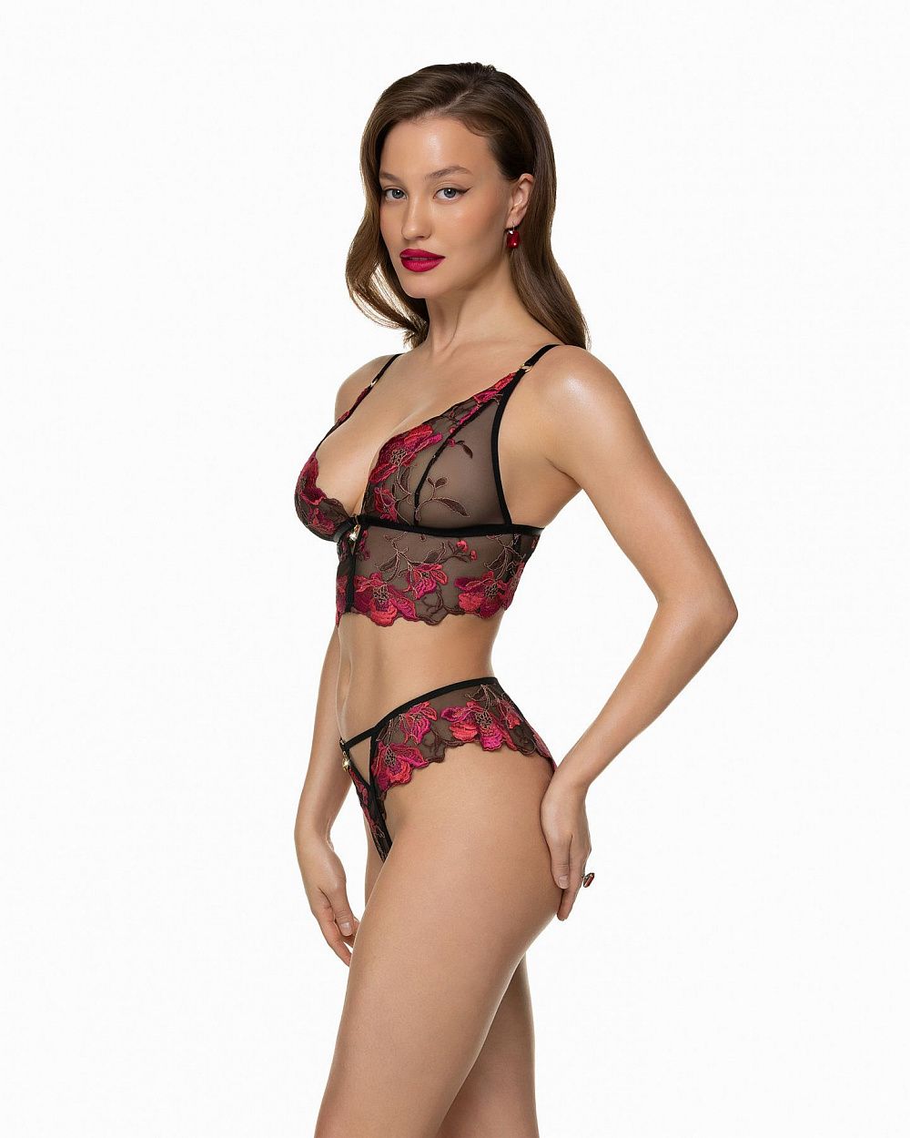 Алые маки на передней панели выглядят как объёмный рисунок на коже, формируя цельный образ в сочетании с бюстгальтером и бралеттом из коллекции. Состав: 100% Полиэстер