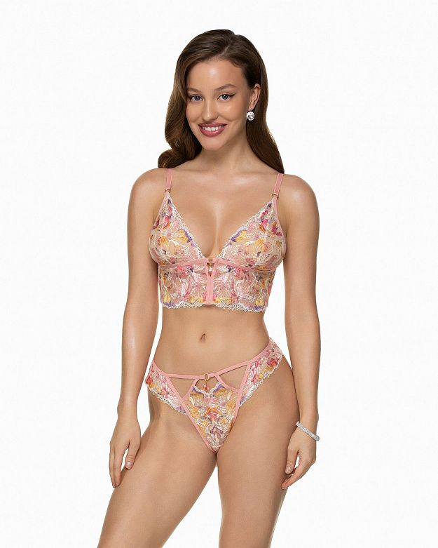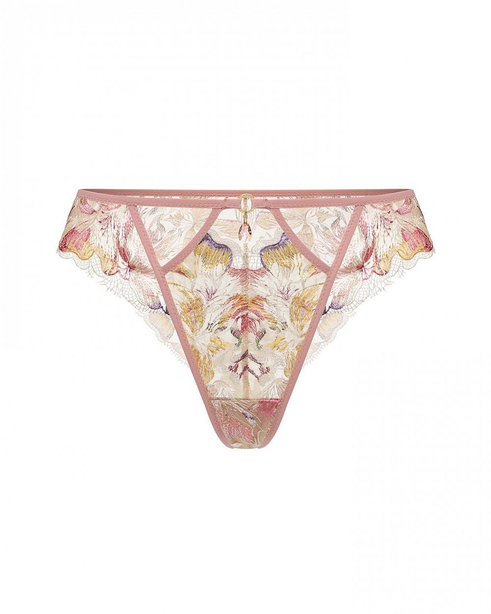 Светлая полупрозрачная сетка служит фоном для вышивки лилий в розовых, персиковых, жёлтых и лавандовых тонах — рисунок будто оживает при движении, создавая эффект светящейся акварели. Состав: 100% Полиэстер