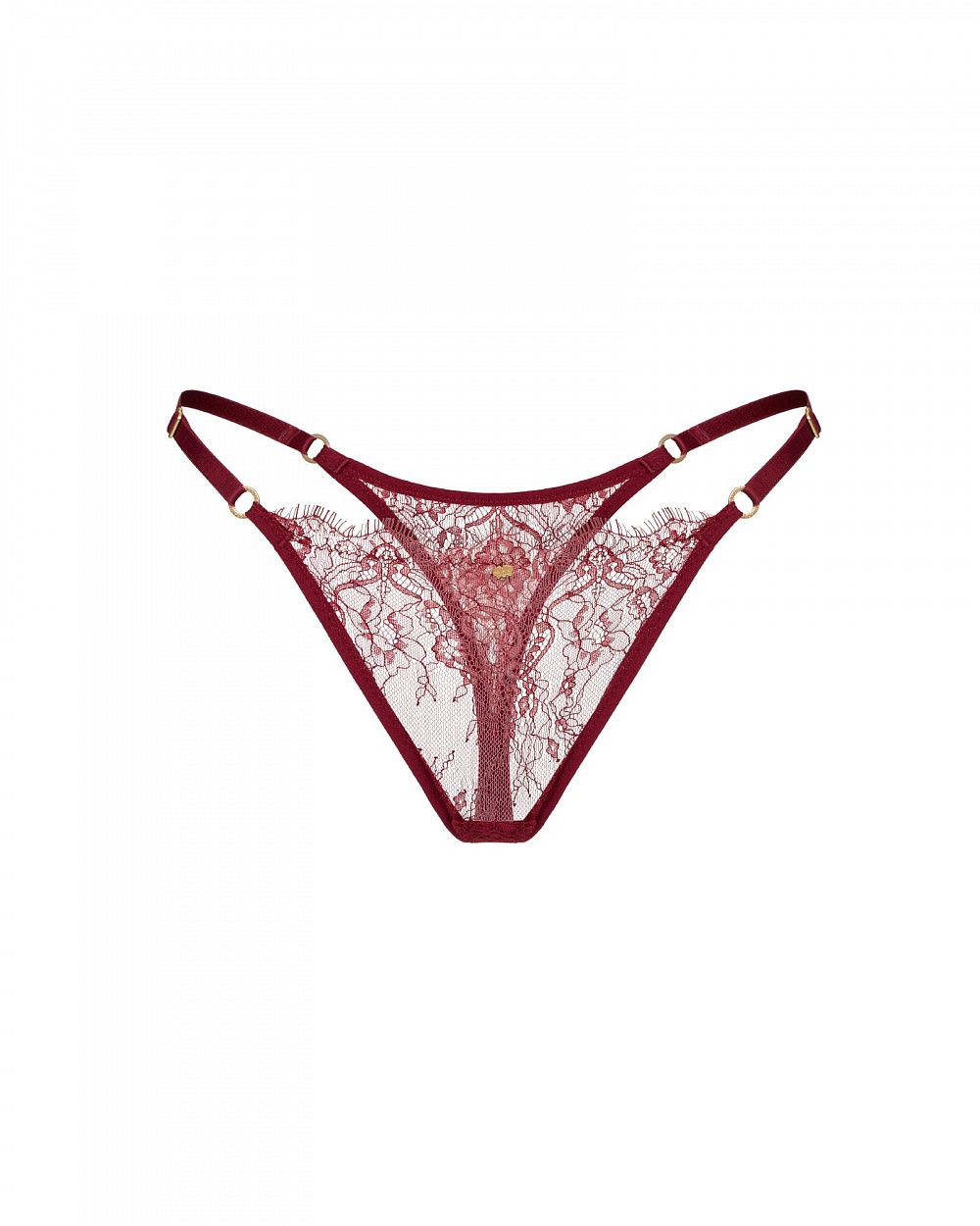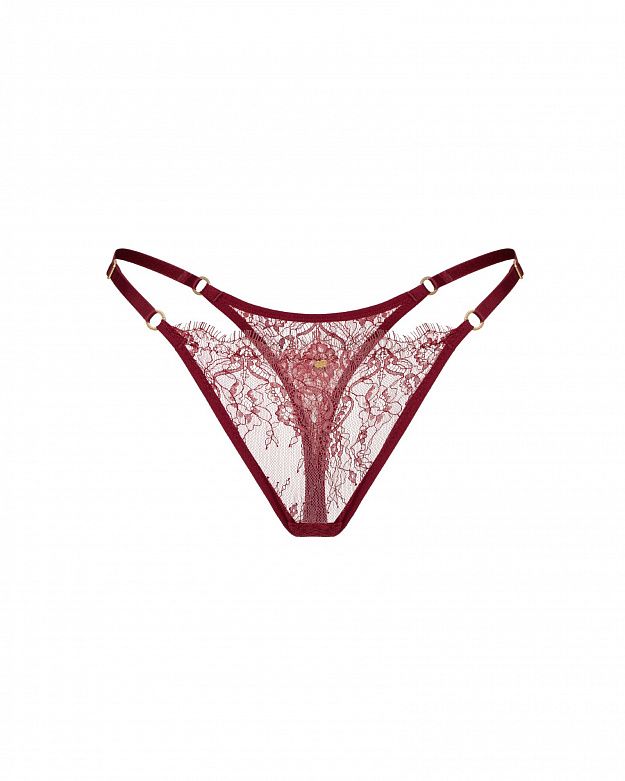 Трусы-танга из французского кружева. Прозрачная текстура кружева с деликатным узором подчёркивает линию бёдер и создаёт ощущение лёгкости на коже. Низкая посадка и тонкие бретели с регуляторами позволяют адаптировать посадку под любую фигуру. Состав: 93% полиамид, 7% спандекс