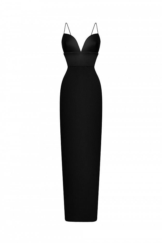 Элегантное платье-макси из плотного атласа с глубоким фигурным декольте. Тонкие бретели, приталенный силуэт, ровный удлинённый низ. Идеально для вечерних выходов и торжеств. Состав: 97% полиэстер, 3% спандекс, подкладка 95% полиэстер, 5% эластан