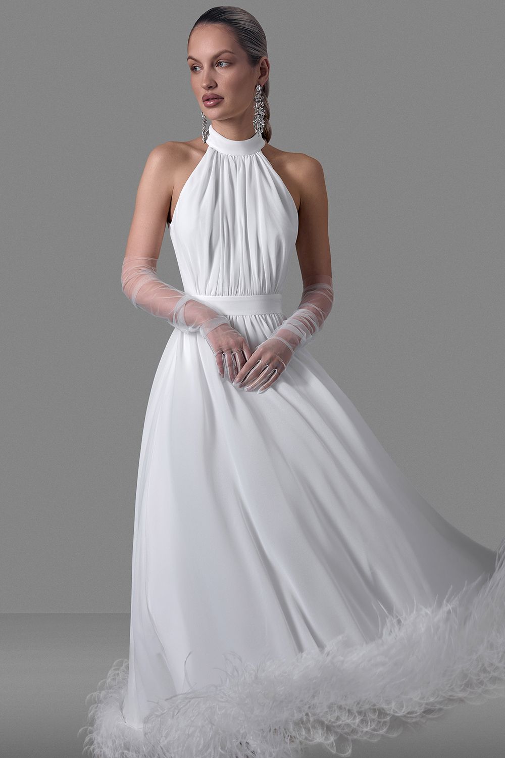 Платье-халтер с перьями