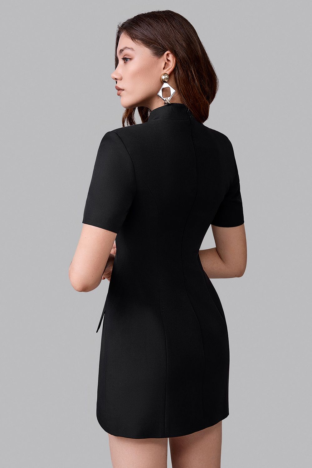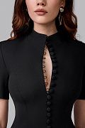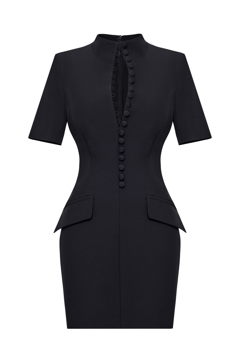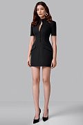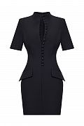 Приталенная линия подчёркивает талию, а воротник-стойка и вертикальный ряд декоративных пуговиц добавляют образу графичность. Короткий рукав делает модель универсальной для разных сезонов. Лаконичные клапаны карманов завершают аккуратный, безупречный tailoring. Подходит как для вечерних выходов, так и для элегантного городского образа.. Состав: 72% полиэстер, 23% вискоза, 5% эластан, Подклад 95% полиэстер, 5% эластан