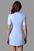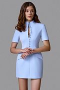 Приталенная линия подчёркивает талию, а воротник-стойка и вертикальный ряд декоративных пуговиц добавляют образу графичность. Короткий рукав делает модель универсальной для разных сезонов. Лаконичные клапаны карманов завершают аккуратный, безупречный tailoring. Подходит как для вечерних выходов, так и для элегантного городского образа.. Состав: 72% полиэстер, 23% вискоза, 5% эластан, Подклад 95% полиэстер, 5% эластан