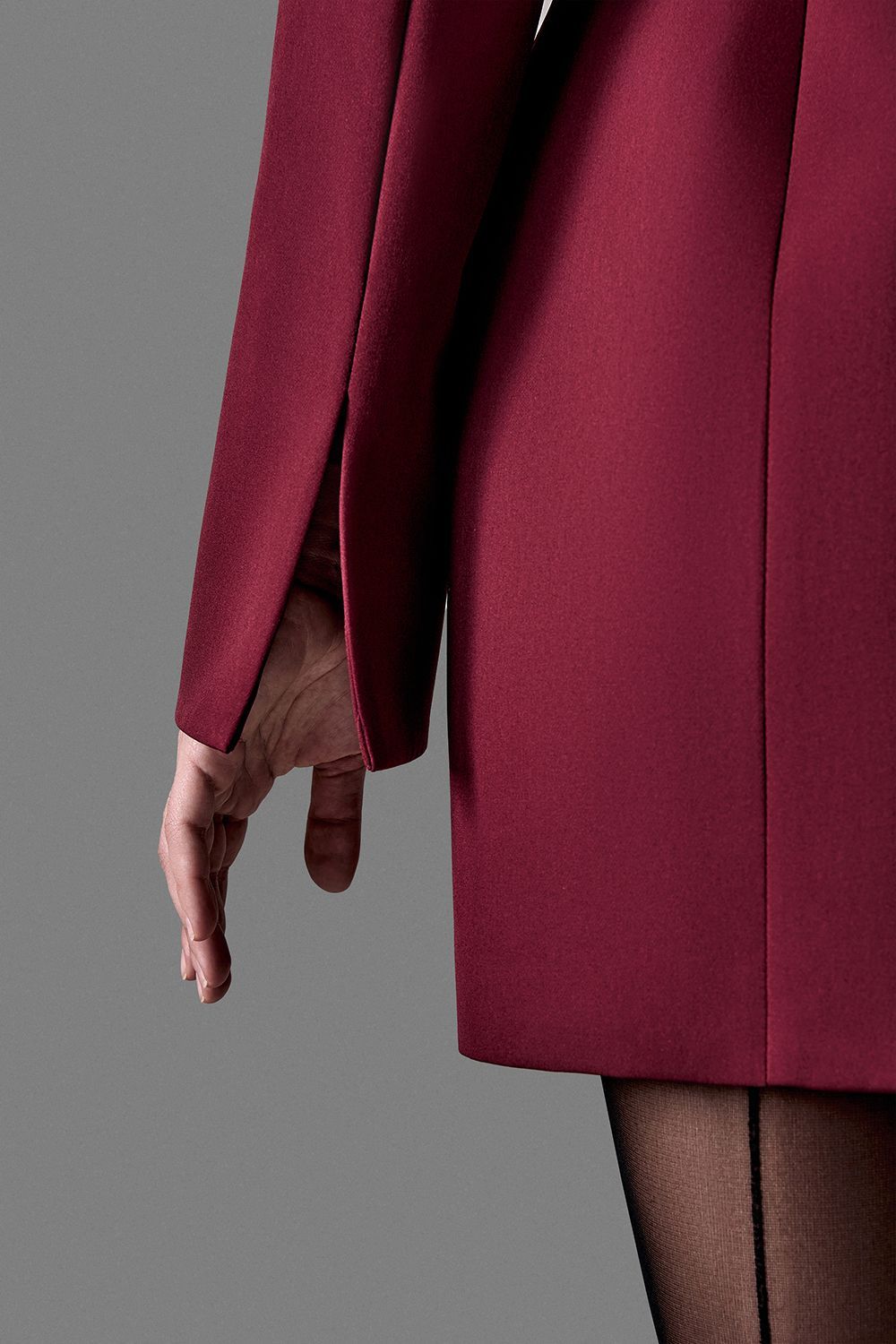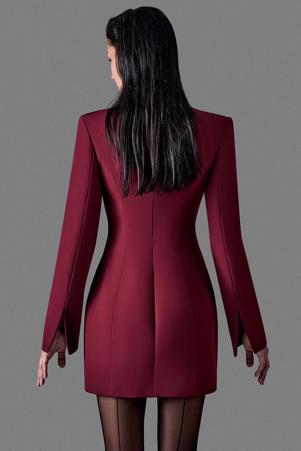 Элегантное мини-платье строгого кроя с длинным рукавом. Модель выполнена в стиле жакета с выразительными плечами, приталенным силуэтом и имитацией клапанов карманов. Визуальный акцент — глубокий V-образный вырез с оригинальной застежкой на ряд обтянутых пуговиц. Идеальный выбор для вечернего выхода или стильного коктейльного образа. Длина платья: 80,5 (размер: S). Состав: 71% полиэстер, 23% вискоза, 6% эластан, Подклад 95% полиэстер 5% эластан