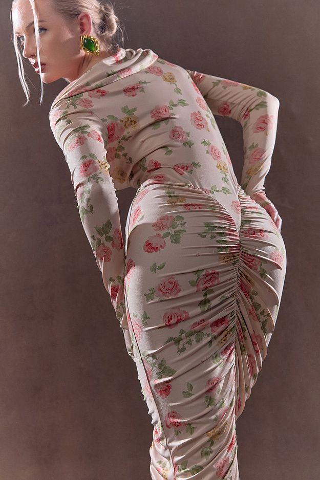 Платье миди с драпировкой и эксклюзивным принтом