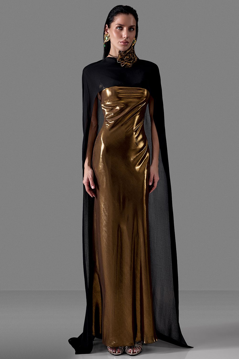 Эффектное прилегающее силуэтное платье с мягкой драпировкой по лифу и открытой спиной, украшенной тонкими перекрещивающимися бретелями. Легкая ткань с зеркальным блеском повторяет линии тела и красиво играет при движении. Состав: 100% полиэстер, подкладка 97% полиэстер, 3% эластан