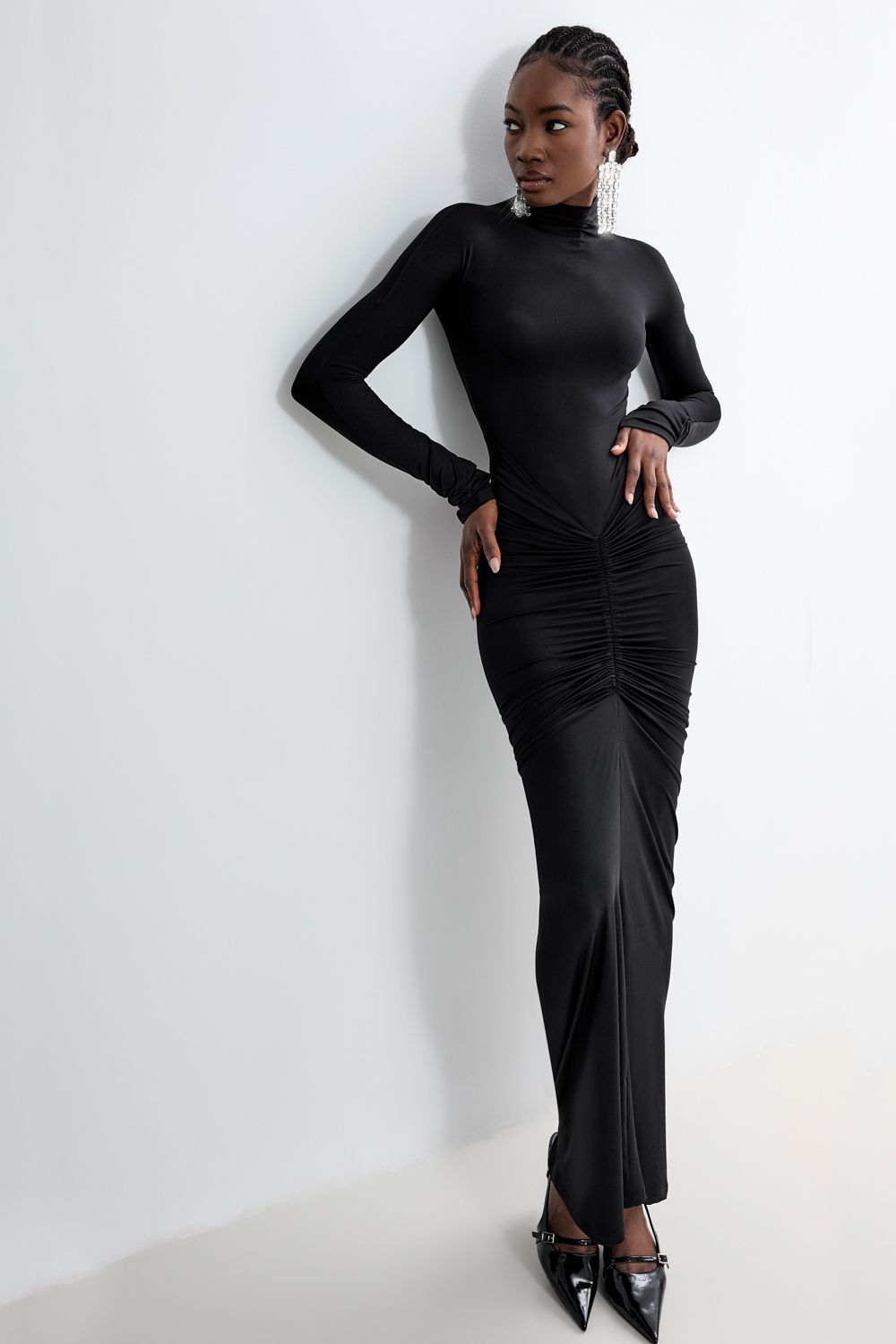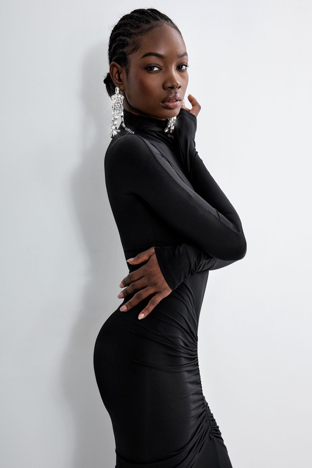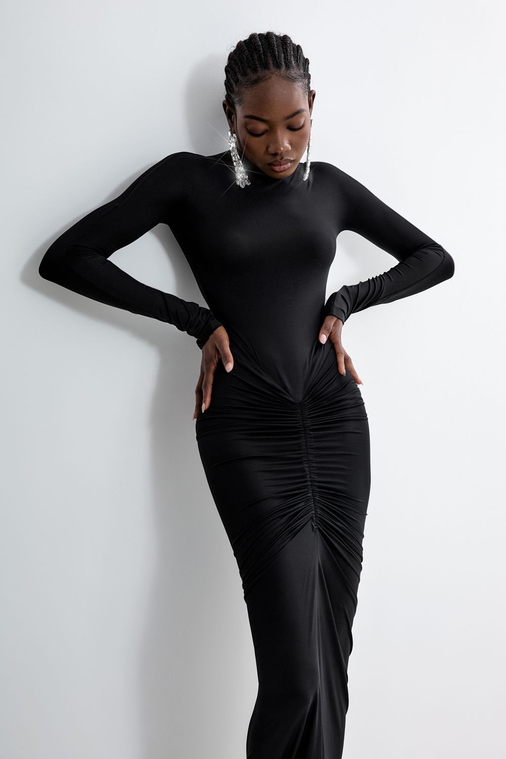 Облегающее платье длины макси с акцентной драпировкой и выразительным узлом на линии бёдер. Изделие выполнено из эластичного материала, который подчёркивает плавные линии силуэта. Встроенное боди дарит уверенность и комфорт при движении, обеспечивая идеальную посадку. Состав: 90% полиэстер, 10% спандекс.