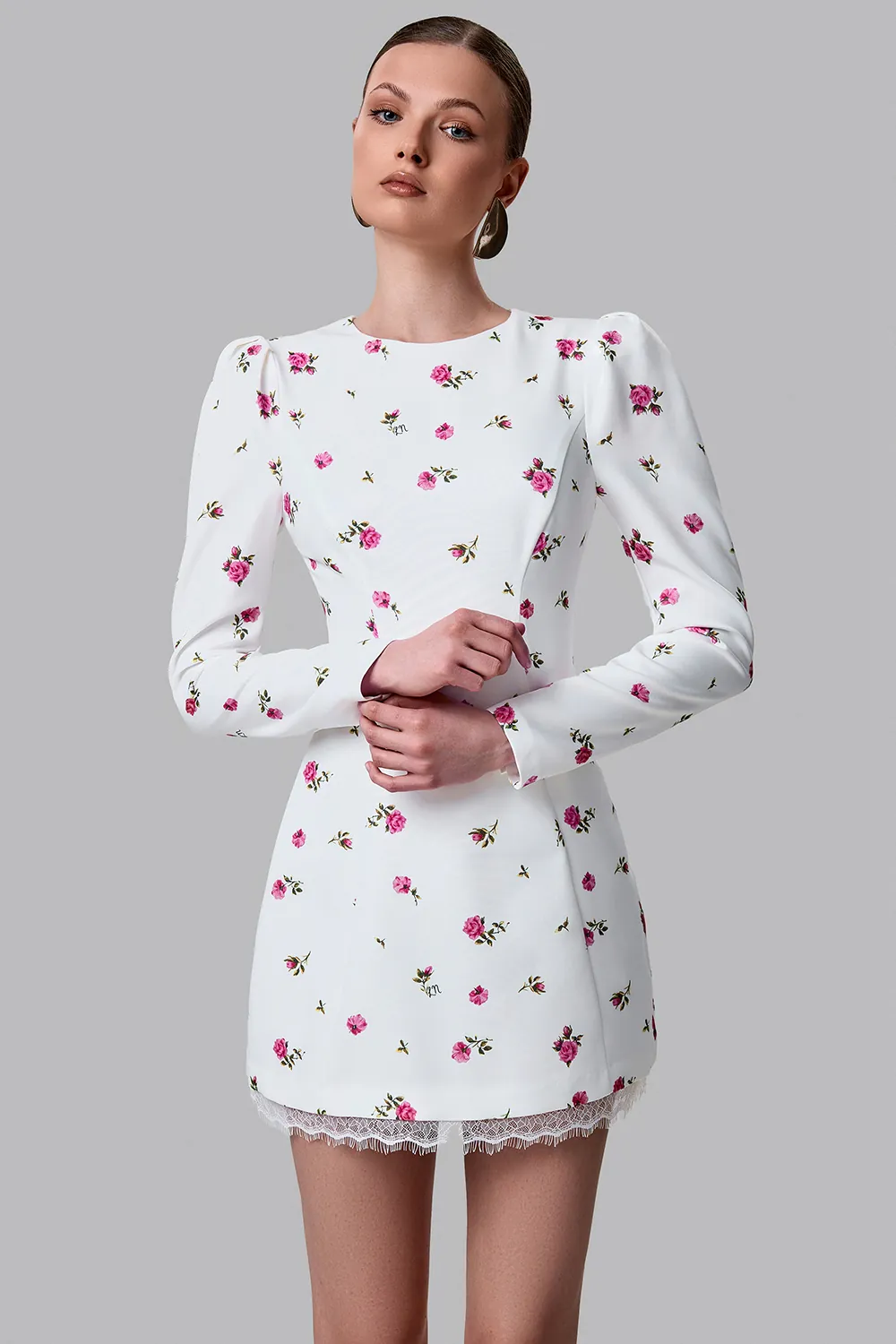 Женственное мини-платье с деликатным цветочным принтом, созданное для лёгких и романтичных образов. Приталенный силуэт подчёркивает фигуру, формируя аккуратную линию талии и мягко раскрываясь к низу. Главный акцент модели — открытая спина с вырезом в форме сердца, который придаёт образу особую чувственность и делает его запоминающимся. Нижний край дополнен кружевной отделкой, добавляющей образу лёгкость и утончённость. Длина платья по спинке (размер: S): 80 см. с кружевом. Состав: 71% полиэстер, 23% вискоза, 6% эластан, Подклад 95% полиэстер 5% эластан