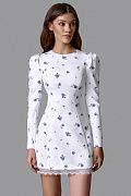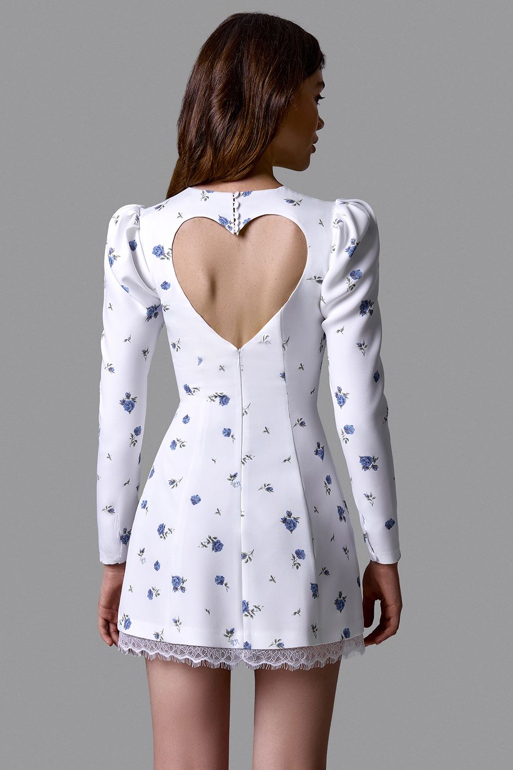 Женственное мини-платье с деликатным цветочным принтом, созданное для лёгких и романтичных образов. Приталенный силуэт подчёркивает фигуру, формируя аккуратную линию талии и мягко раскрываясь к низу. Главный акцент модели — открытая спина с вырезом в форме сердца, который придаёт образу особую чувственность и делает его запоминающимся. Нижний край дополнен кружевной отделкой, добавляющей образу лёгкость и утончённость. Длина платья по спинке (размер: S): 80 см. с кружевом. Состав: 71% полиэстер, 23% вискоза, 6% эластан, Подклад 95% полиэстер 5% эластан