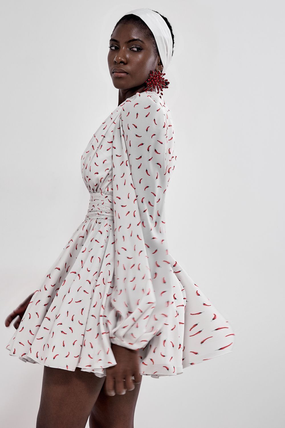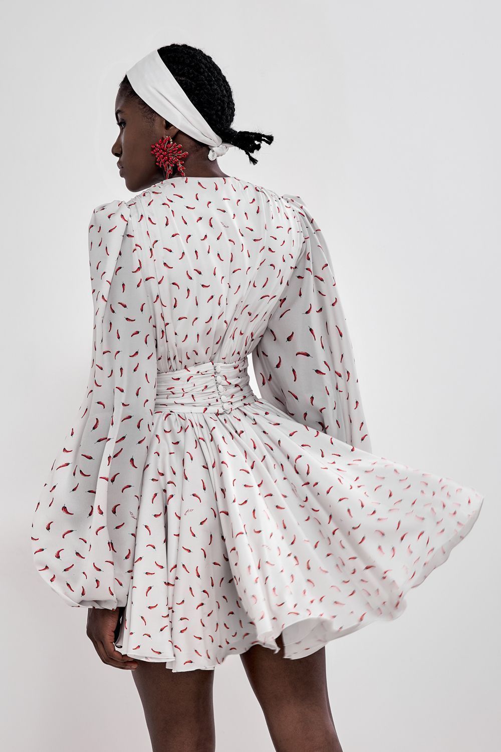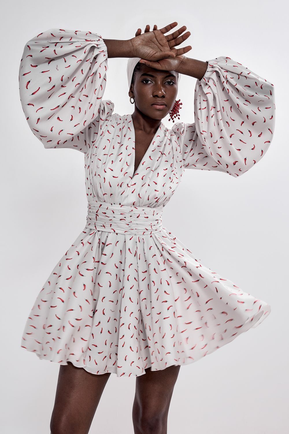 Платье мини с пышными рукавами