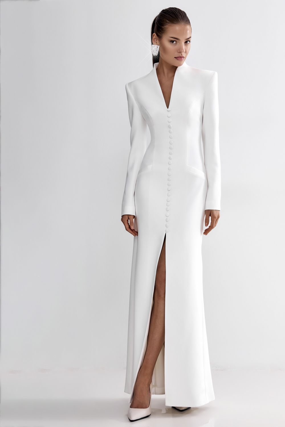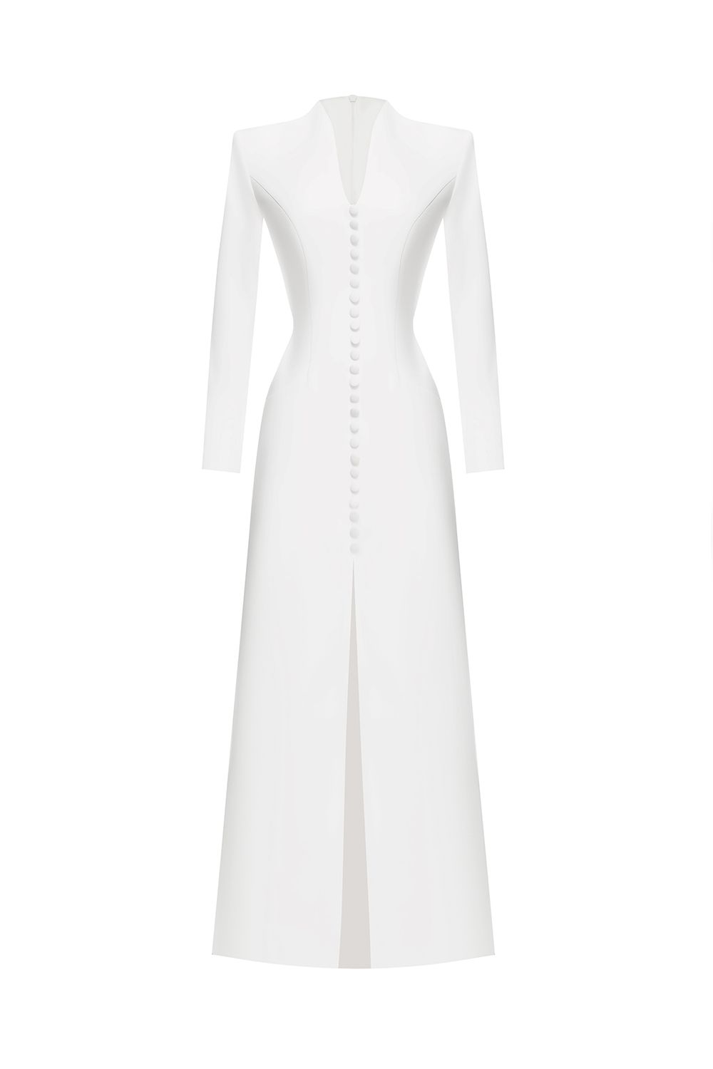 Платье в пол с фигурным вырезом и пуговицами