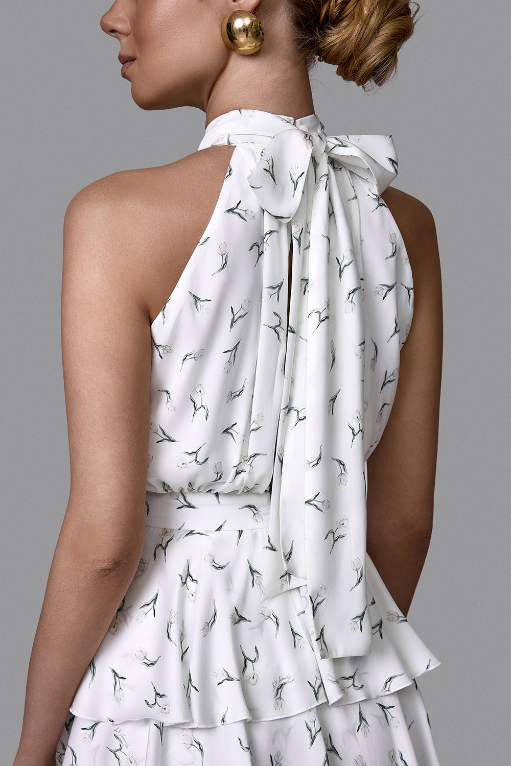 Платье миди с высоким воротом и открытыми плечами создаёт утончённый и современный силуэт. Многоярусная юбка мягко движется при каждом шаге, добавляя образу динамику и лёгкость. Эксклюзивный принт делает модель выразительной, сохраняя при этом элегантность и универсальность. Акцент на талии подчёркивает фигуру, формируя женственный и изящный силуэт. Идеальный выбор для летних мероприятий, отпускных образов и особых случаев. Состав: 100% полиэстер, подкладка 97% полиэстер, 3% эластан