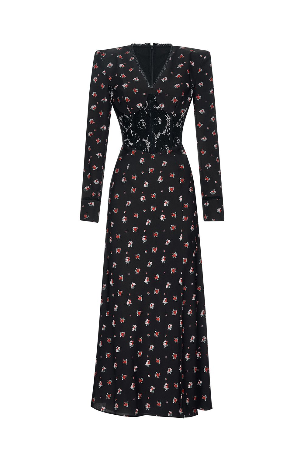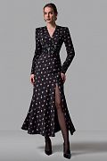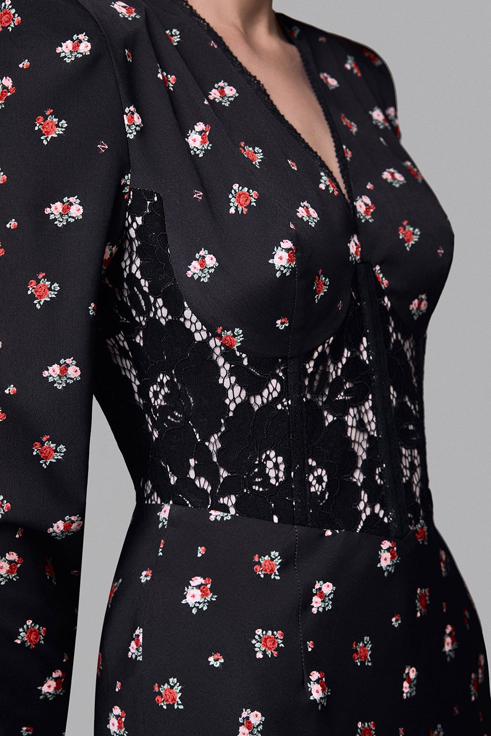 Платье миди из плотного струящегося материала с мелким цветочным принтом. Модель с акцентированным силуэтом за счёт встроенного кружевного корсета, который подчёркивает талию и добавляет образу женственности. Линия плеч усилена подплечниками, создающими выразительный силуэт и визуально балансирующими фигуру. Глубокий разрез на ноге добавляет лёгкости и чувственности. Идеальный выбор для вечернего выхода или особого случая. Состав: 97% полиэстер, 3% эластан, Подкладка 97% полиэстер, 3% эластан