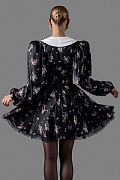 Эффектное платье мини из плотного сатина с деликатным цветочным принтом. Акцентный контрастный воротник в стиле 70-х придаёт образу элегантность и делает силуэт выразительным. Объёмные рукава с манжетами создают модный объем, а расклешённая юбка подчёркивает талию и добавляет динамики движений.